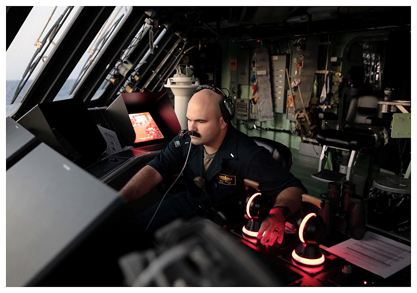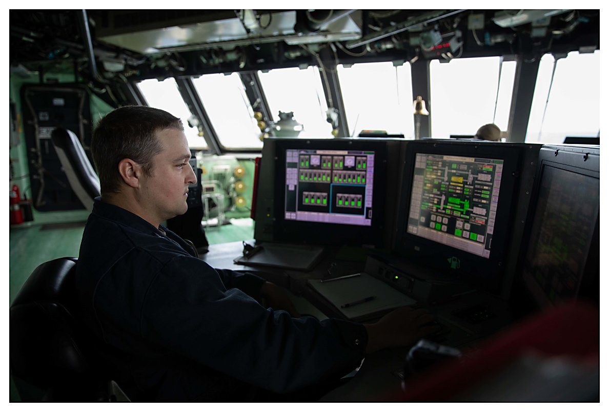 126k | 16 May 2021: The Caribbean Sea - Engineman 1st Class Brian Ballum stands remote control operator (RCO) watch on the bridge aboard Sioux City. (U.S. Navy photo #210516-N-RL695-1029 by MC2 Marianne Guemo from the Defense Visual Information Distribution Service) | ||