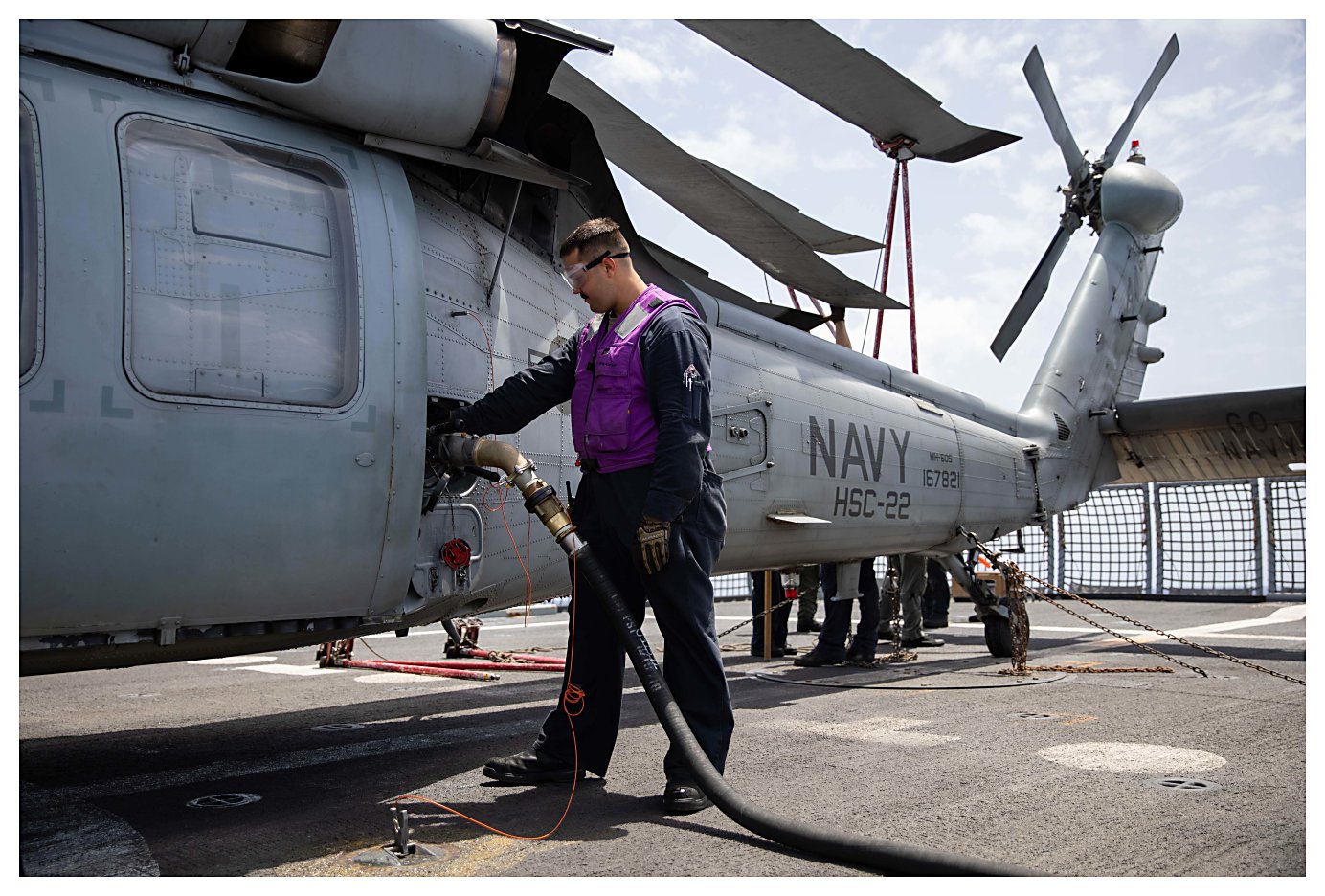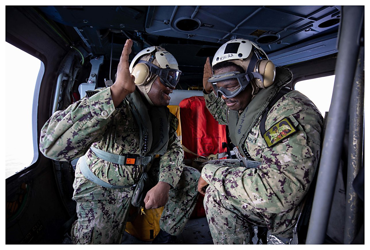 Sea Combat Squadron (HSC) 22, Detachment 3 on the flight deck. (U.S. Navy photo #210525-N-RL695-1094 by MC2 Marianne Guemo from the Defense Visual Information Distribution Service) | ||