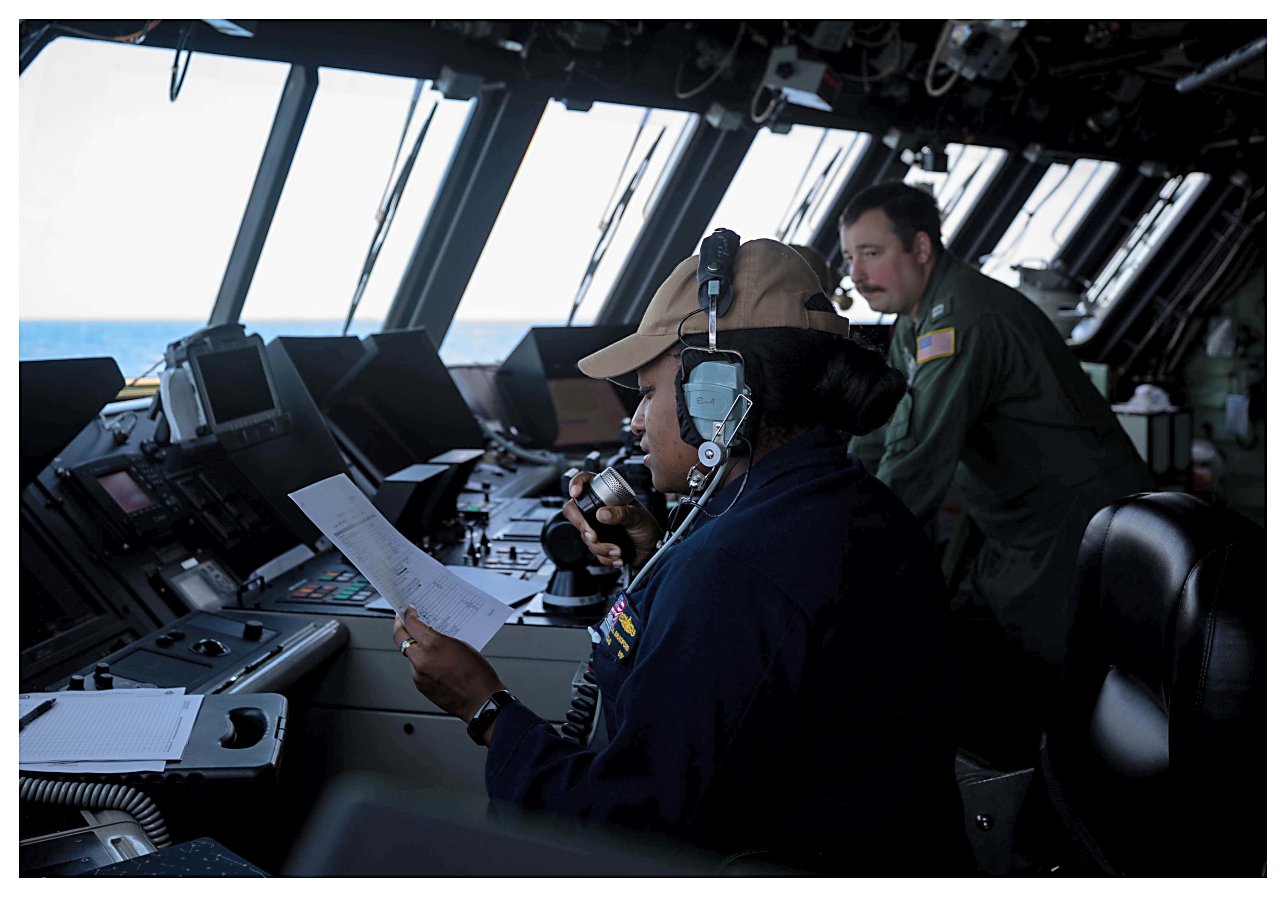 154k | 16 May 2021: The Caribbean Sea - Lt.(jg) Lavaida Bradford makes an announcement over the ship’s general announcement system (1MC) on the bridge of Sioux City. (U.S. Navy photo #210516-N-RL695-1044 by MC2 Marianne Guemo from the Defense Visual Information Distribution Service) | ||