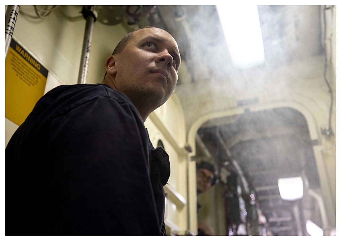 103k | 17 May 2021: The Caribbean Sea - Chief Damage Controlman William Quirk runs the Battle Fogger to test air flow and ventilation aboard Sioux City. (U.S. Navy photo #210517-N-RL695-1093 by MC2 Marianne Guemo from the Defense Visual Information Distribution Service) | ||