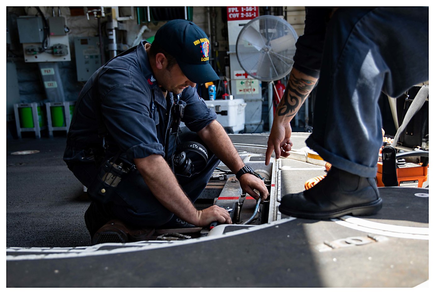 evolution in the engineering spaces aboard Sioux City. (U.S. Navy photo #210505-N-RL695-1014 by MC2 Marianne Guemo from the Defense Visual Information Distribution Service) | ||