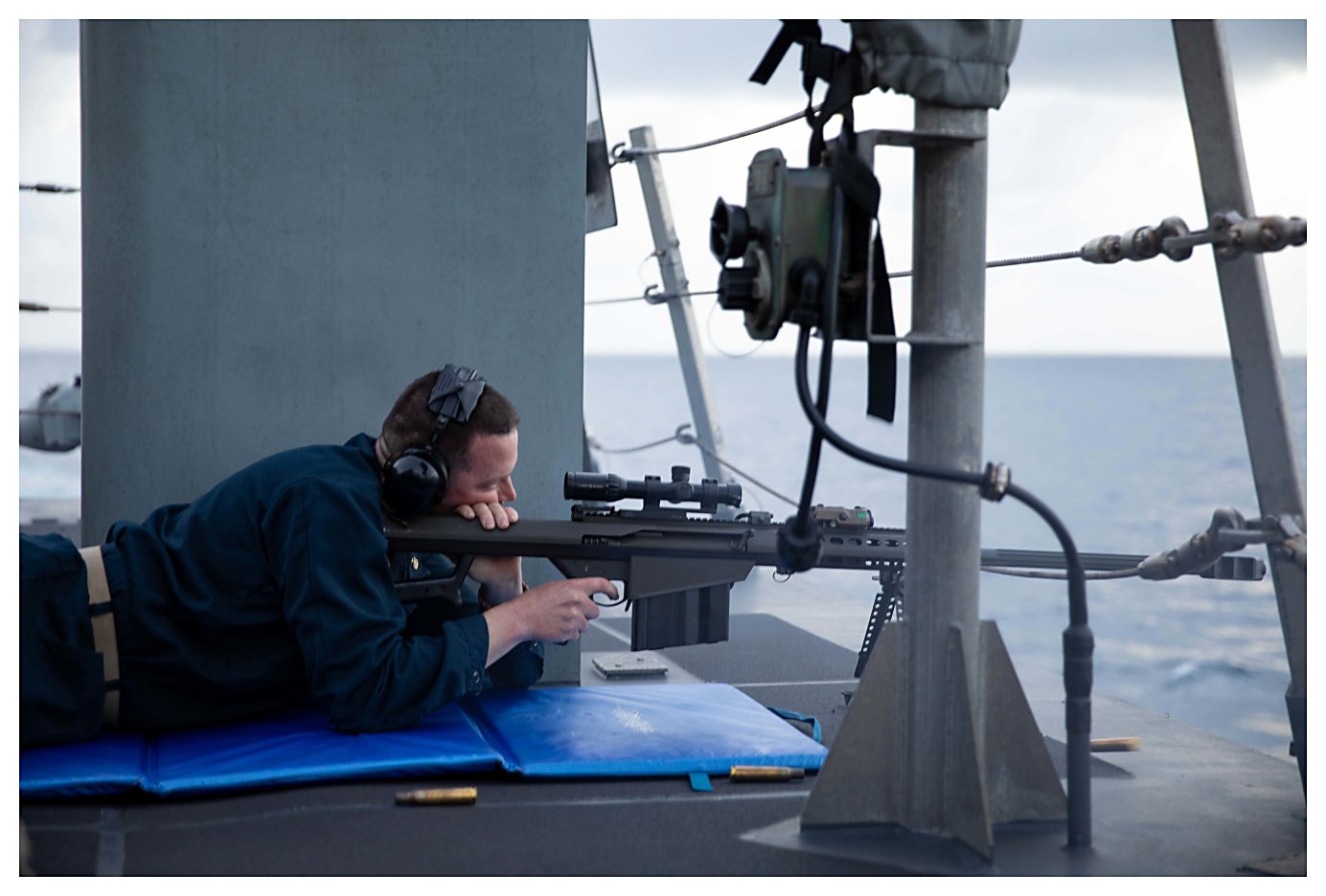 a .50-caliber machine gun qualification shoot. (U.S. Navy photo #210612-N-RL695-1401 by MC2 Marianne Guemo from the Navy News Stand) | ||