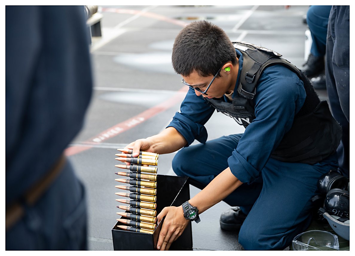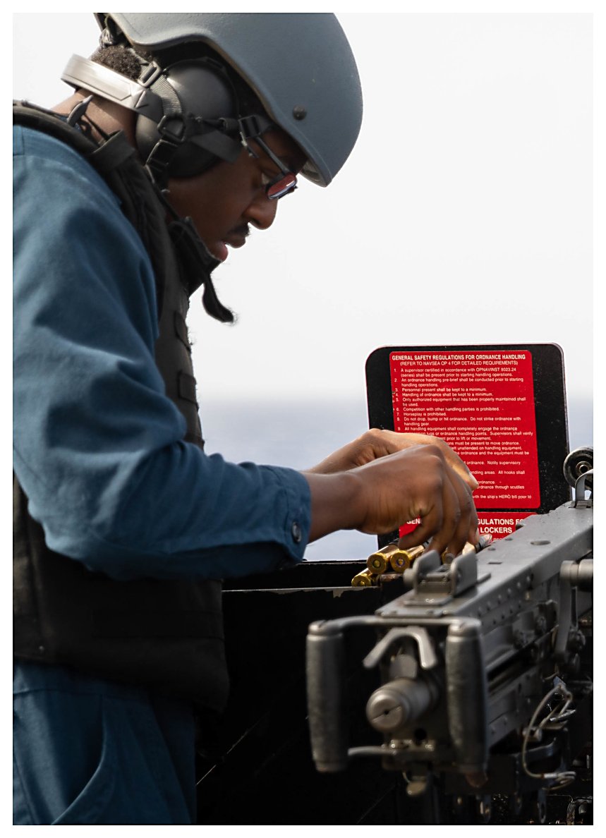 112k | 12 June 2021: The Caribbean Sea - Gunner’s Mate 3rd Class Devunte Williams reloads a .50-caliber machine gun for a requalification shoot. (U.S. Navy photo #210612-N-RL695-1140 by MC2 Marianne Guemo from the Navy News Stand) | ||