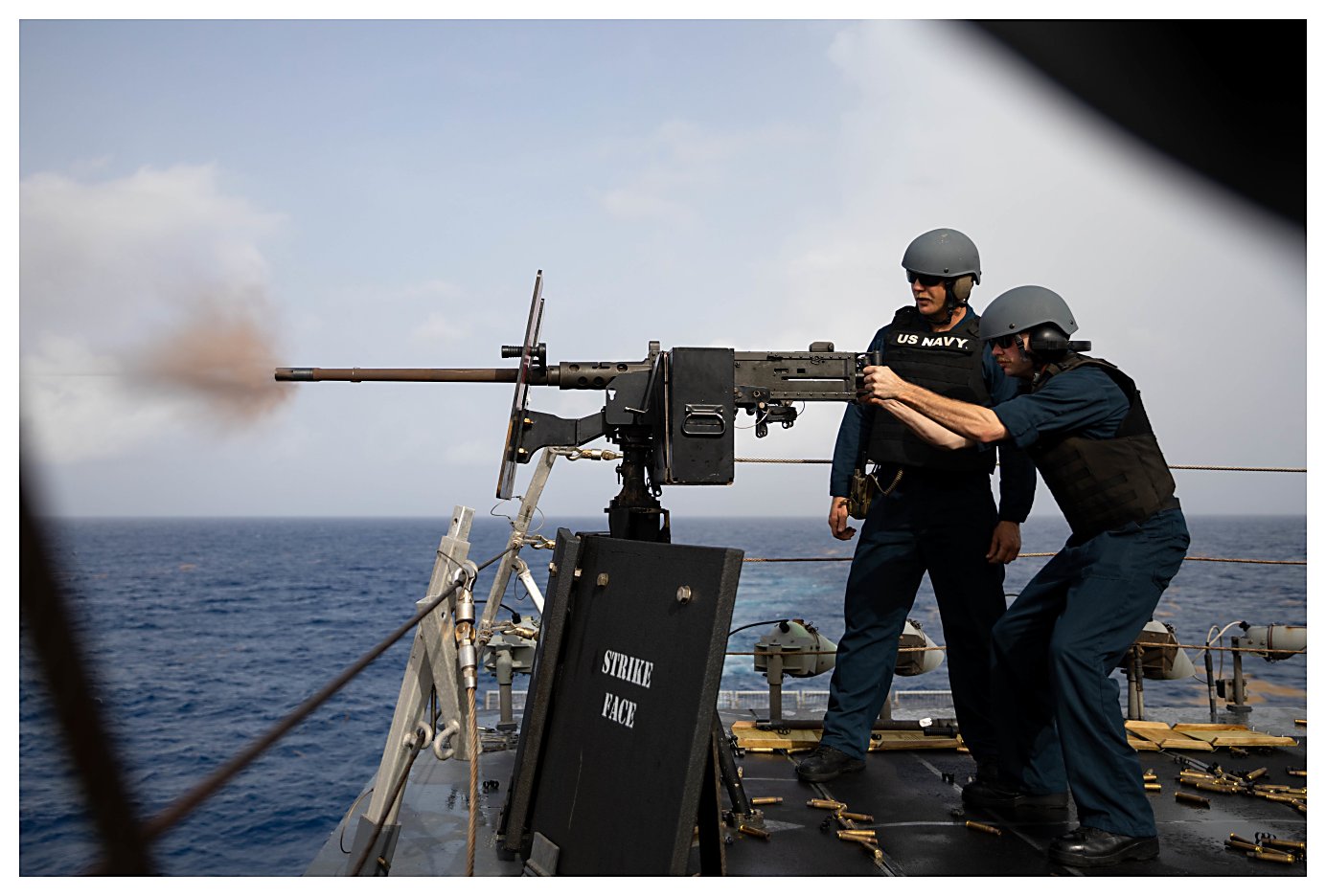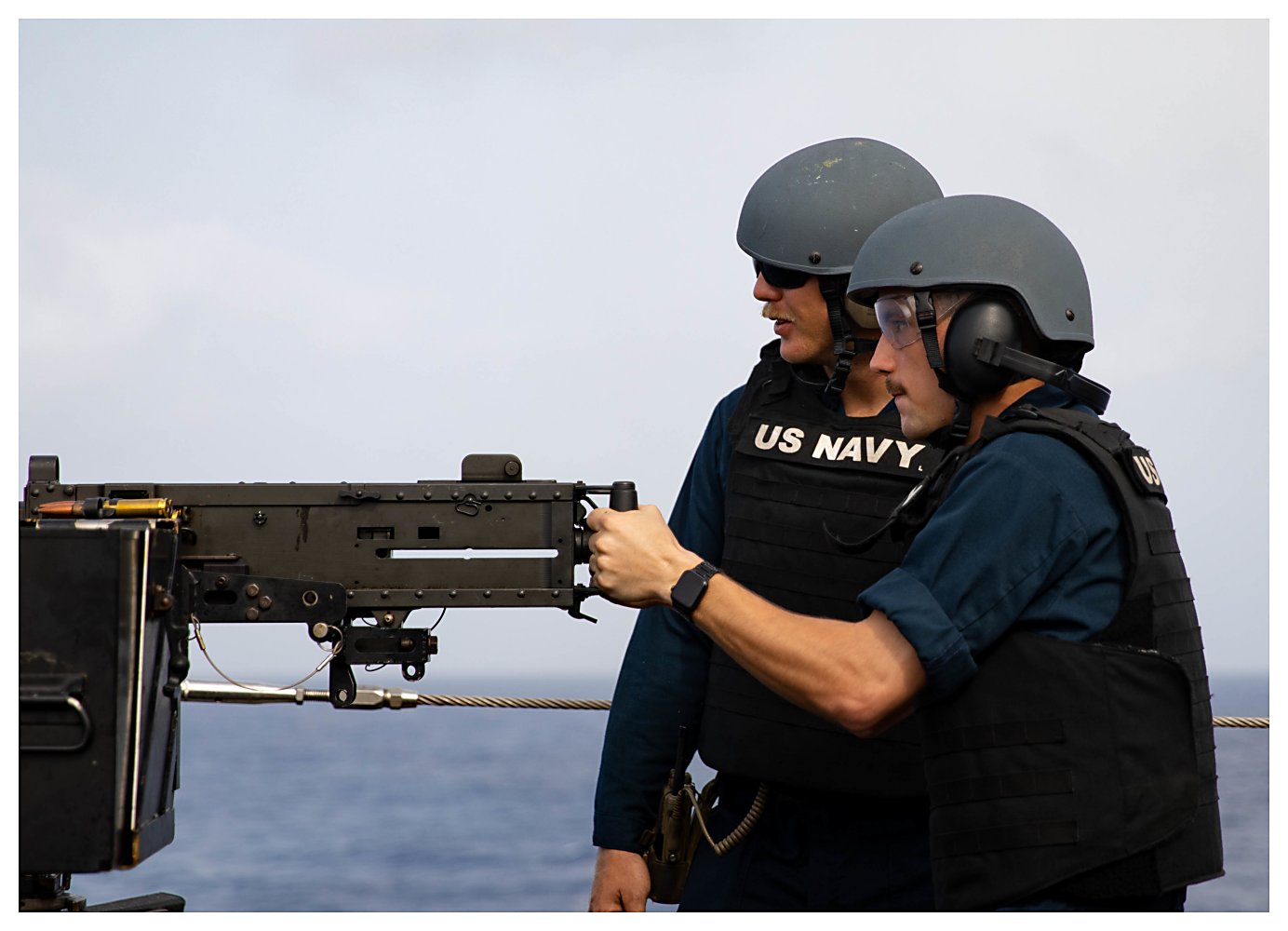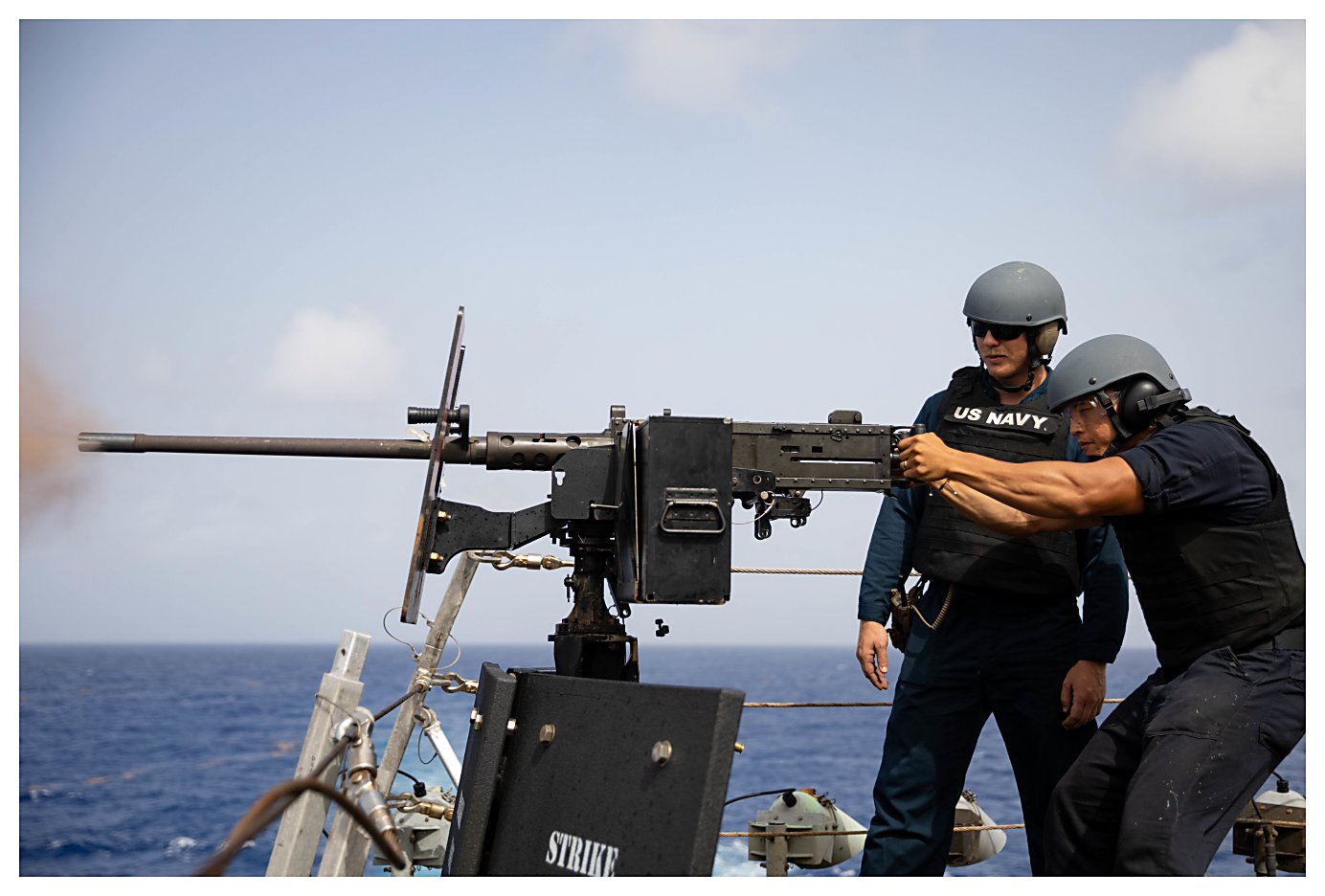 156k | 11 June 2021:: Guantanamo Bay, Cuba - Fire Controlman 1st Class Carlos Ruiz, left, and Gunner’s Mate 1st Class Richard Martinez man a .50-caliber machine gun