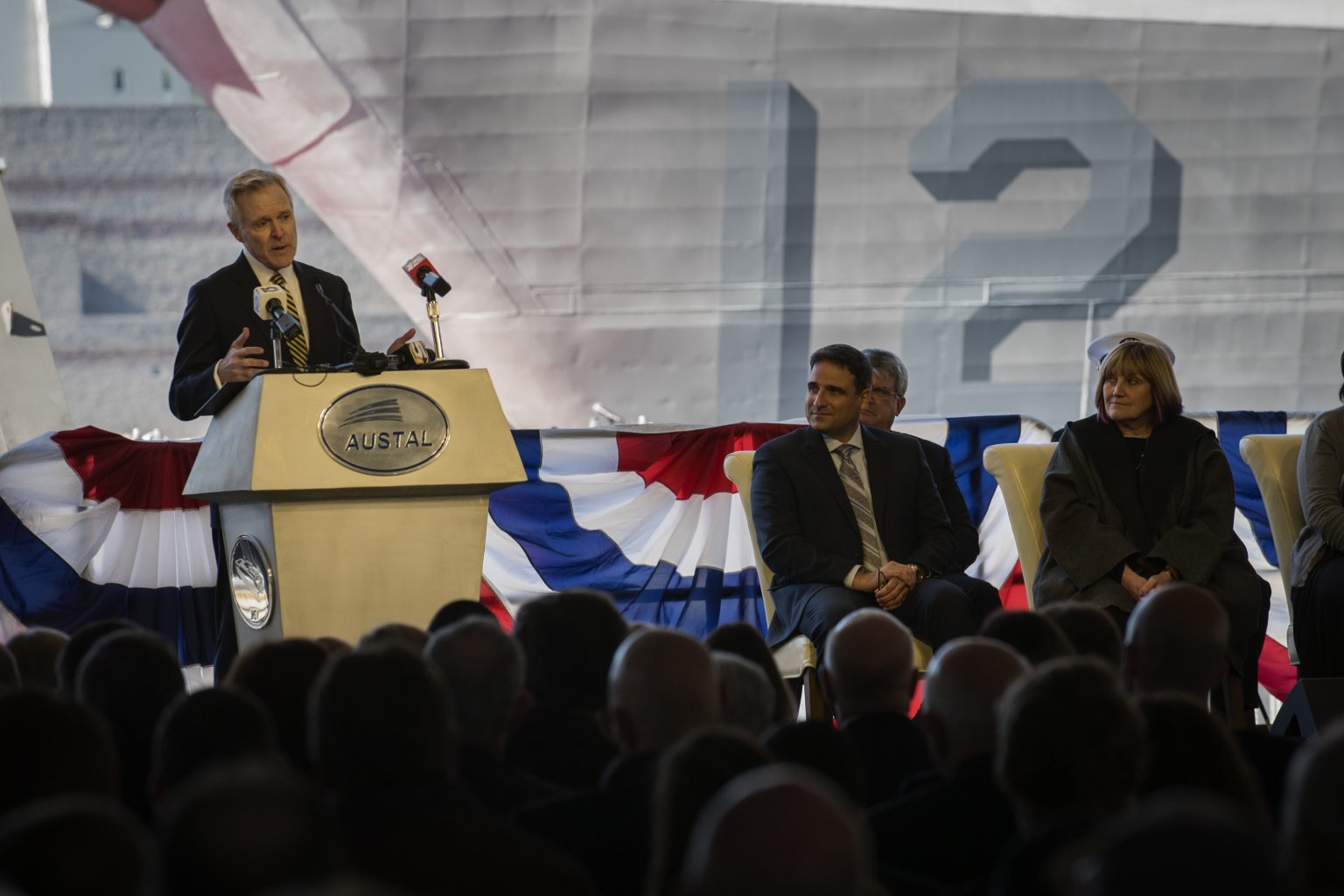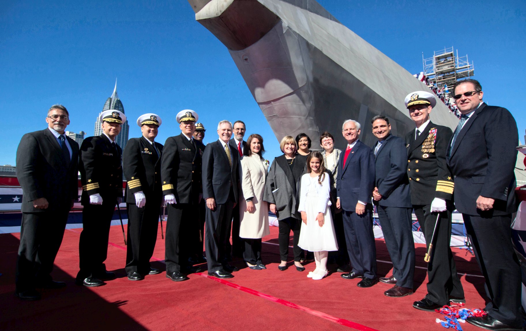 144k | 19 December 2015: Mobile, Ala. – Secretary of the Navy Ray Mabus delivers the principal address during the christening ceremony of the Navy's newest