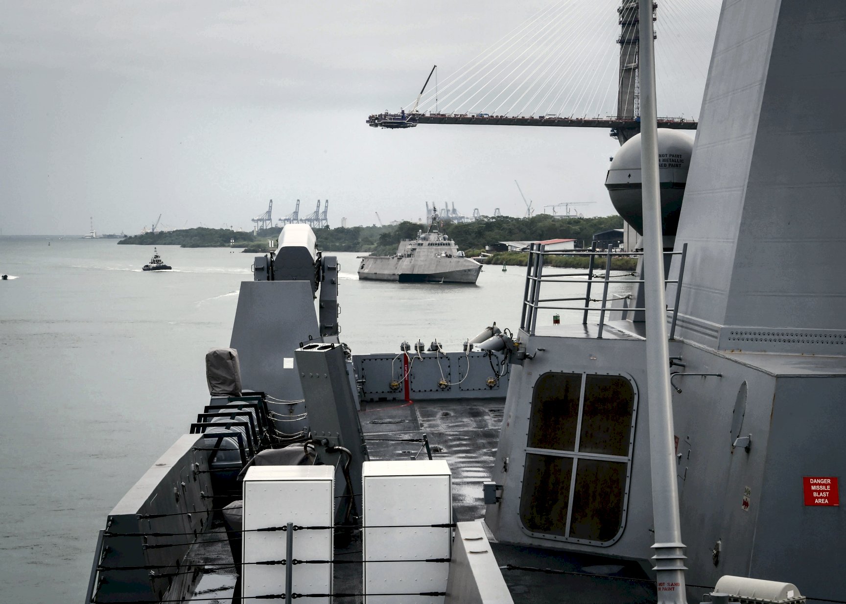 (LCS 12) transit the Panama Canal. Portland is currently transiting from its building site in Pascagoula, Miss. to its new homeport in San Diego. (U.S. Navy photo #180109-N-UK053-052 by MC2 Britney Odom from the Navy Newstand) | ||