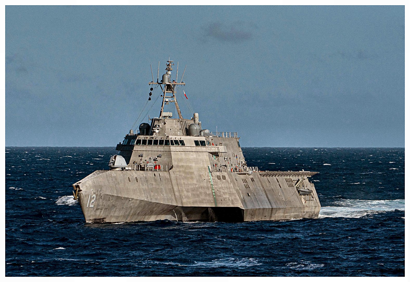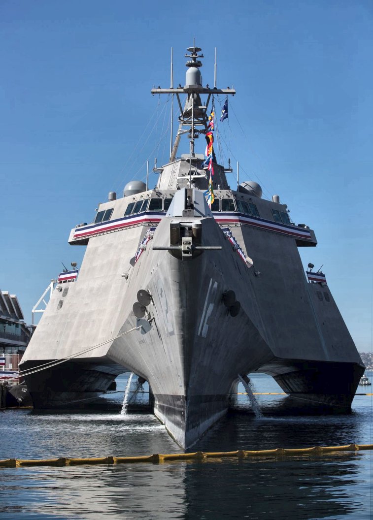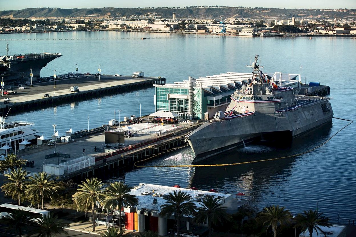 Independence-variant littoral combat ship and one of eight LCS homeported in San Diego. (U.S. Navy photo #180309-N-SH509-862 by Lt.(jg) Mary Browning from the Navy Newstand) |