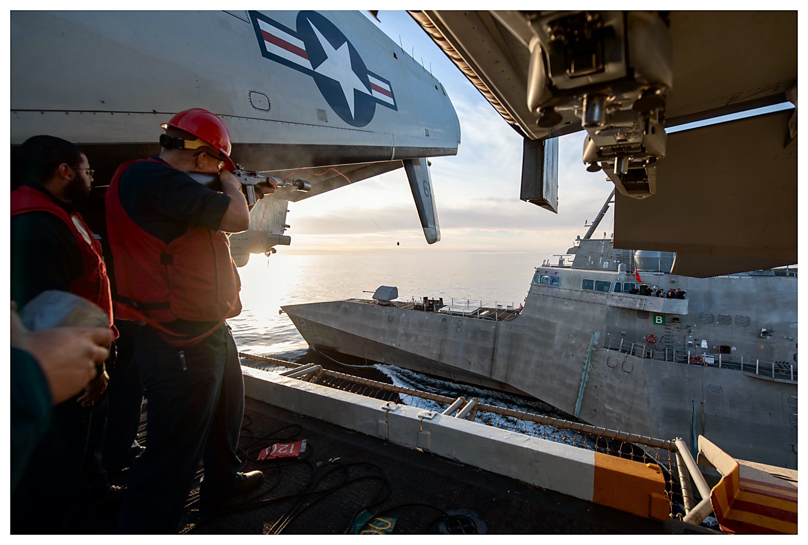 6.) 511k02 December 2019: the Pacific Ocean – 1., 2., 3.) The Independence-variant littoral combat ship USS Omaha (LCS 12) pulls alongside the aircraft carrier USS Theodore Roosevelt (CVN 71) for a fueling at sea. Theodore Roosevelt is underway conducting routine training in the Eastern Pacific Ocean. 4., 5., 6.) The Independence-variant littoral combat ship USS Omaha (LCS 12) is shown fueling from the aircraft carrier USS Theodore Roosevelt (CVN 71). Both ships are underway conducting routine training in the Eastern Pacific Ocean. (U. S. Navy photos #1. 191202-N-ZX120-1012, 2. 191202-N-ZX120-1156, 3. 191202-N-ZX120-1081, 4. 191202-N-ZX120-1153, 5. 191202-N-ZX120-1151, and 6. 191202-N-ZX120-1145, by MC3 Terence Deleon Guerrero from the Defense Visual Information Distribution Service) | ||||