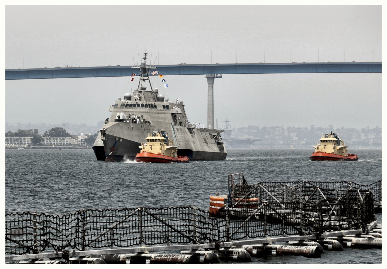 163k | 09 March 2018: San Diego, Cal. – The littoral combat ship USS Omaha (LCS 12) pulls into Naval Base San Diego. Omaha is the newest