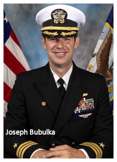 | 4.) .. Aug. 2021 | Cmdr. Joseph Bubulka (enl. '94, STA21 '05) (Easton, Pa.) | 4.) May 2022 | Cmdr. Benjamin E. Nehrke (NROTC ‘04) (Arlington, Va.) | ||