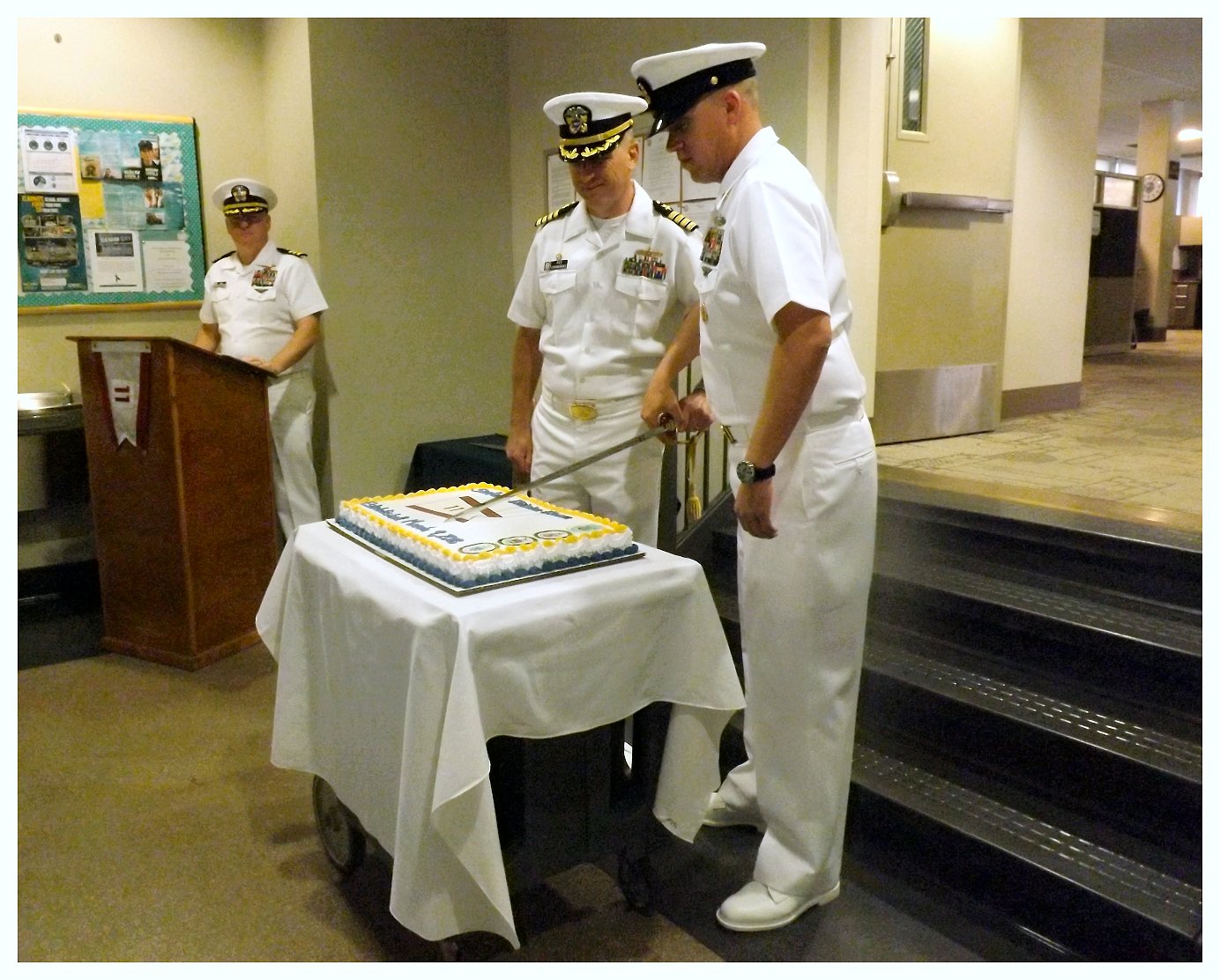 267k | 20 April 2018: San Diego, Cal. – Captain John Fay, a native of Scarborough, Maine and commander, Surface Division Eleven (COMSURFACEDIV ELEVEN), cuts a ceremonial cake with Senior Chief