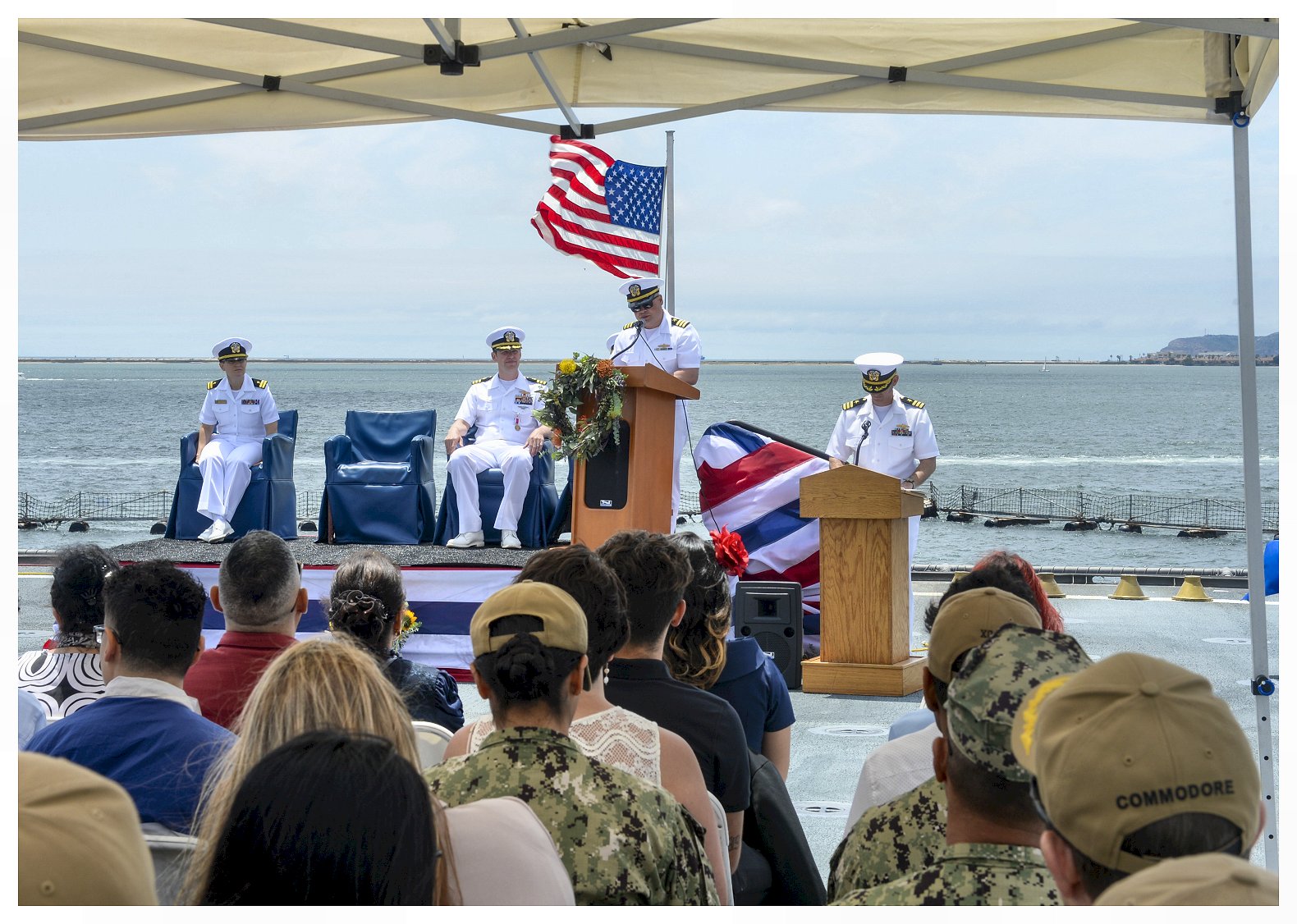 during a change of command ceremony held on Omaha’s flight deck. (U.S. Navy photo #230608-N-ZS023-1084 by MC1 Vance Hand from the Defense Visual Information Distribution Service) | ||