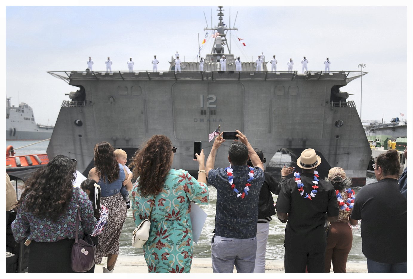 (U. S. Navy photos by MC2 Kassandra Alanis from the Defense Visual Information Distribution Service)1.) Families welcome home USS Omaha as it moors pierside at its homeport of Naval Base San Diego, 11 July 2025. ........................................................250711-N-CH260-1005 2.) Families welcome home USS Omaha as it moors pierside at its homeport of Naval Base San Diego. ....................................................................................250711-N-CH260-1143 3.) Engineman 1st Class Rachel Cruz, from Columbus, Ohio, is welcomed home by her family as Omaha is moored at its homeport. ...........................250711-N-CH260-1083 4.) Cmdr. Ryan Doyle, CO of Omaha, speaks to families as the ship is moored pierside at its homeport of Naval Base San Diego. .................................250711-N-CH260-1168 1.) 1512p014 2.) 1512p015 3.) 1512p016 4.) 1512p017 | ||||
