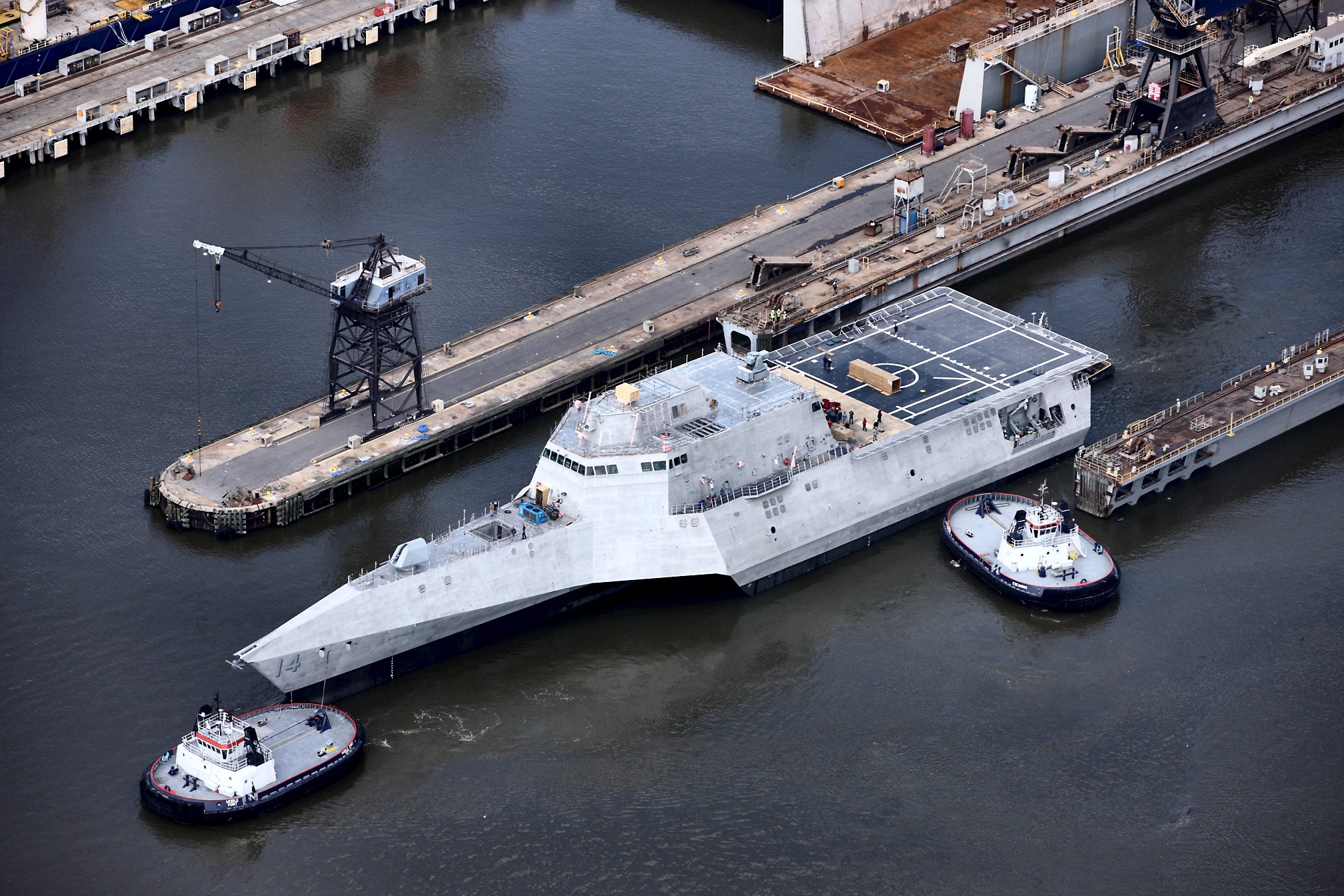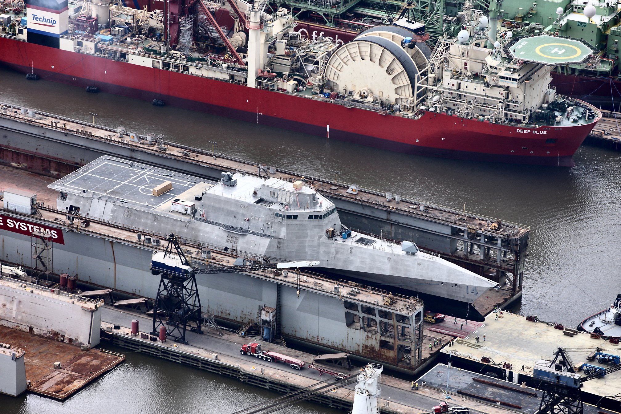 3549k | 24 May 2017: Mobile, Ala. - The future USS Manchester sitting at the Austal USA fitting out dock. (© Photo courtesy of Austal USA) | ||