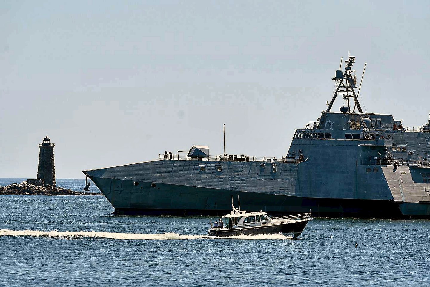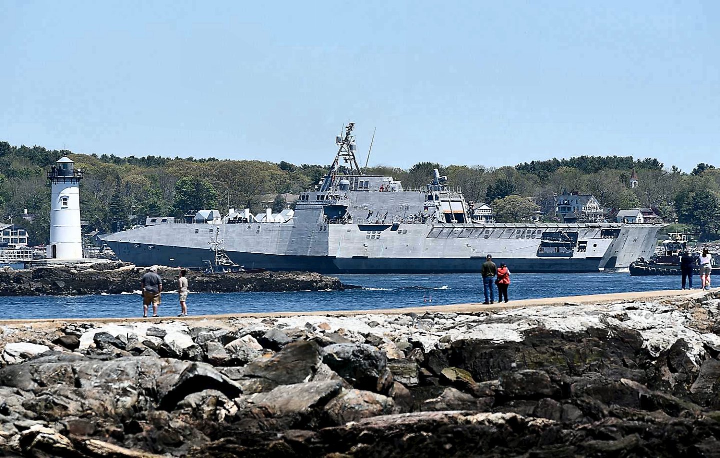 8.) 308k21 May 2018: entering Portsmouth, N.H. - An eight view series of PCU Manchester (LCS 14) transitting the Piscataqua River enroute to her commissioning site at the New Hampshire State Pier in Portsmouth, N.H. 1.) People watch from Great Island Common in New Castle as PCU Manchester approaches the Piscataqua River. 2.) PCU Manchester passes the lighthouse at the mouth of the Piscataqua River. 3. and 4.) People watch as PCU Manchester enters the Piscataqua River in New Castle. 5.) PCU Manchester goes under the Memorial Bridge in Portsmouth. 6.) PCU Manchester passes by the marina at Badger's Island on its way to dock in Portsmouth. 7. and 8.) PCU Manchester spins around before docking in Portsmouth. (© All photos by David Lane of The New Hampshire Union Leader) 1.) 1514015 2.) 1514016 3.) 1514017 4.) 1514018 5.) 1514019 6.) 1514020 7.) 1514021 8.) 1514022 | ||||