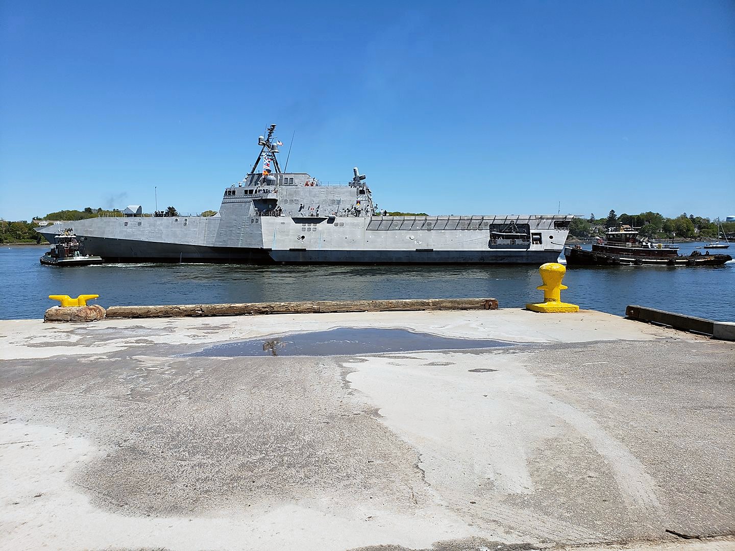 360k | 21 May 2018: Portsmouth, N.H. - PCU Manchester is assisted to her berth at the State Pier in anticipation of her commissioning on 26 May. (© Photo courtesy of Go Portsmouth) | ||