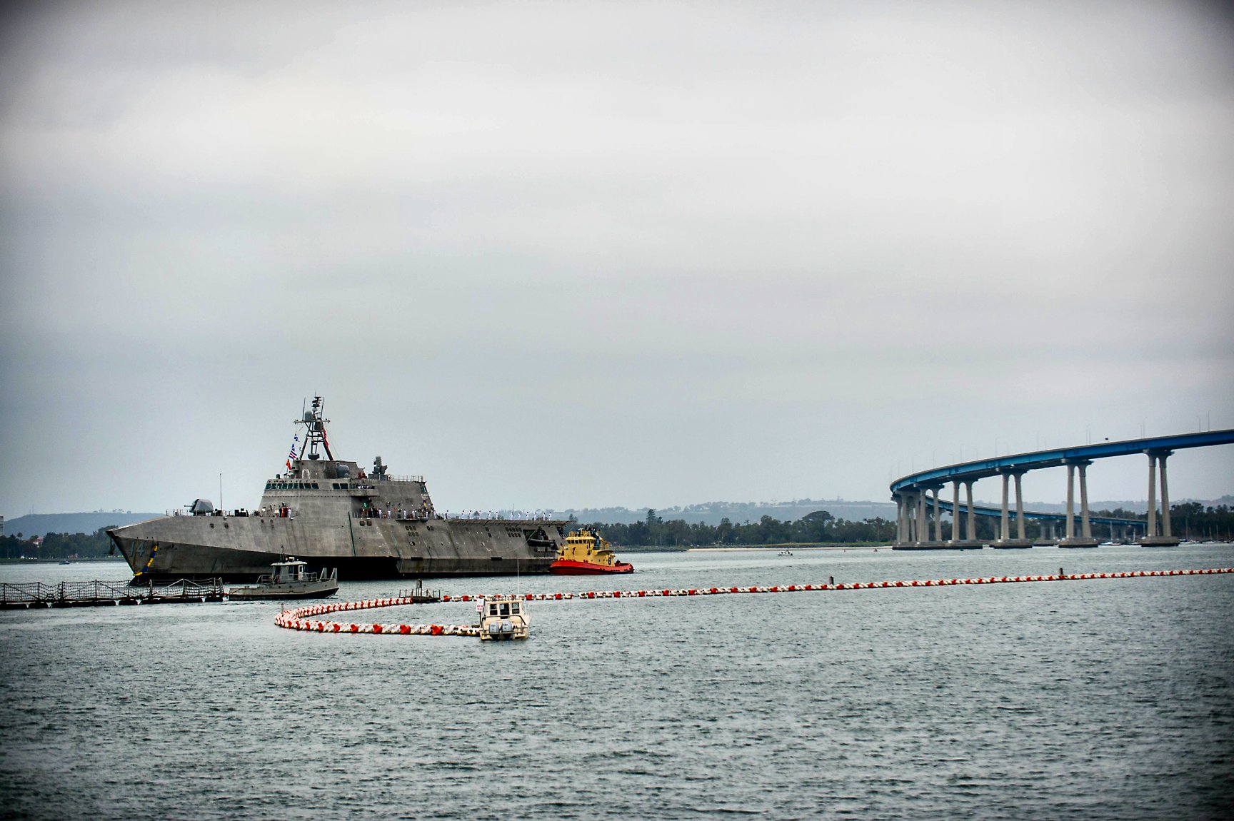 290k | 19 June 2018: San Diego, Cal. - The Independence-variant littoral combat ship USS Manchester (LCS 14) arrives at Naval Base San Diego after completing