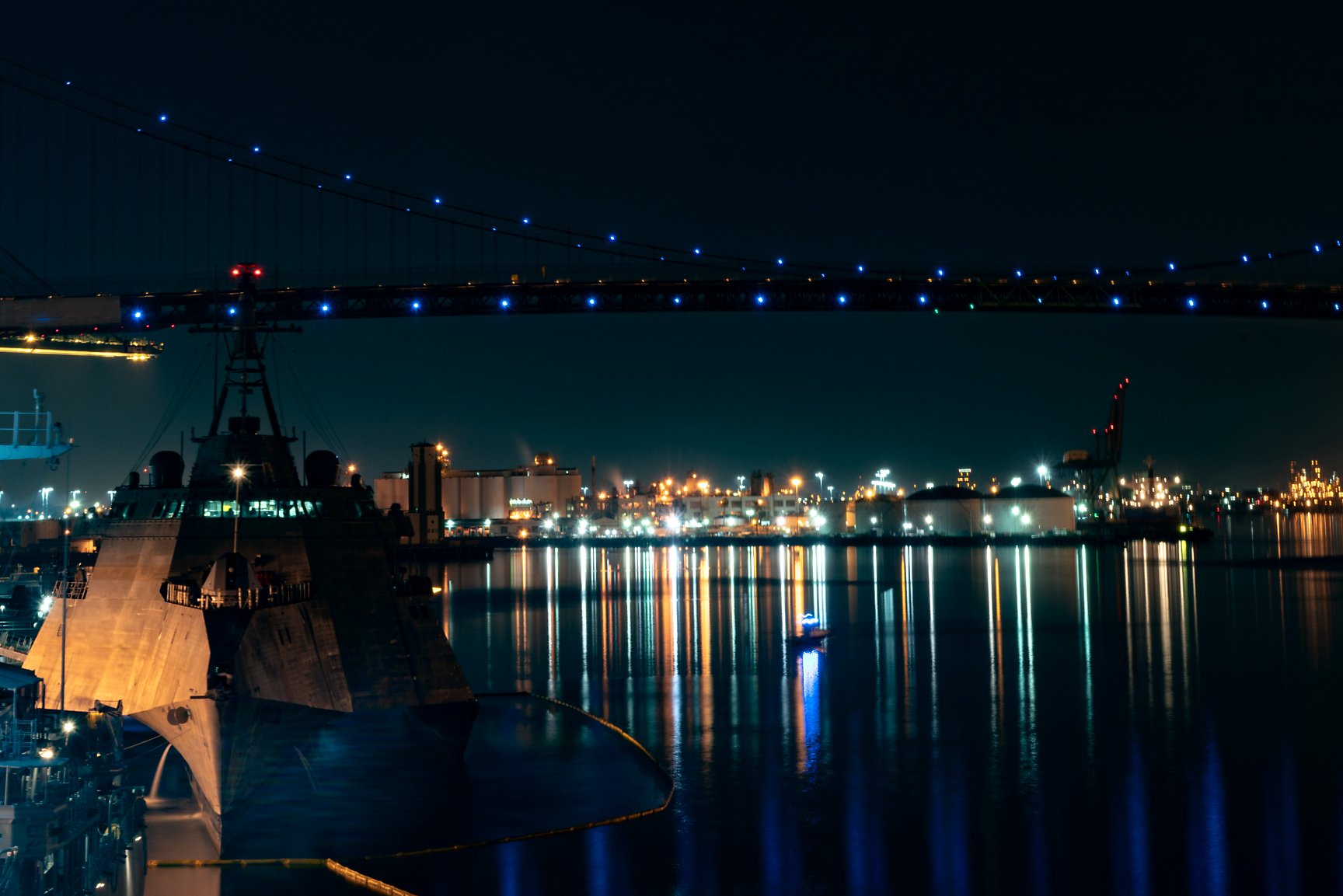 night after hurricane Nate passes through the area. Pictured in the background is the future USS Manchester (LCS 14). (U.S. Navy photo #171008-N-N0101-005 by GSMC Joshua Faber from the Navy Newstand) | ||