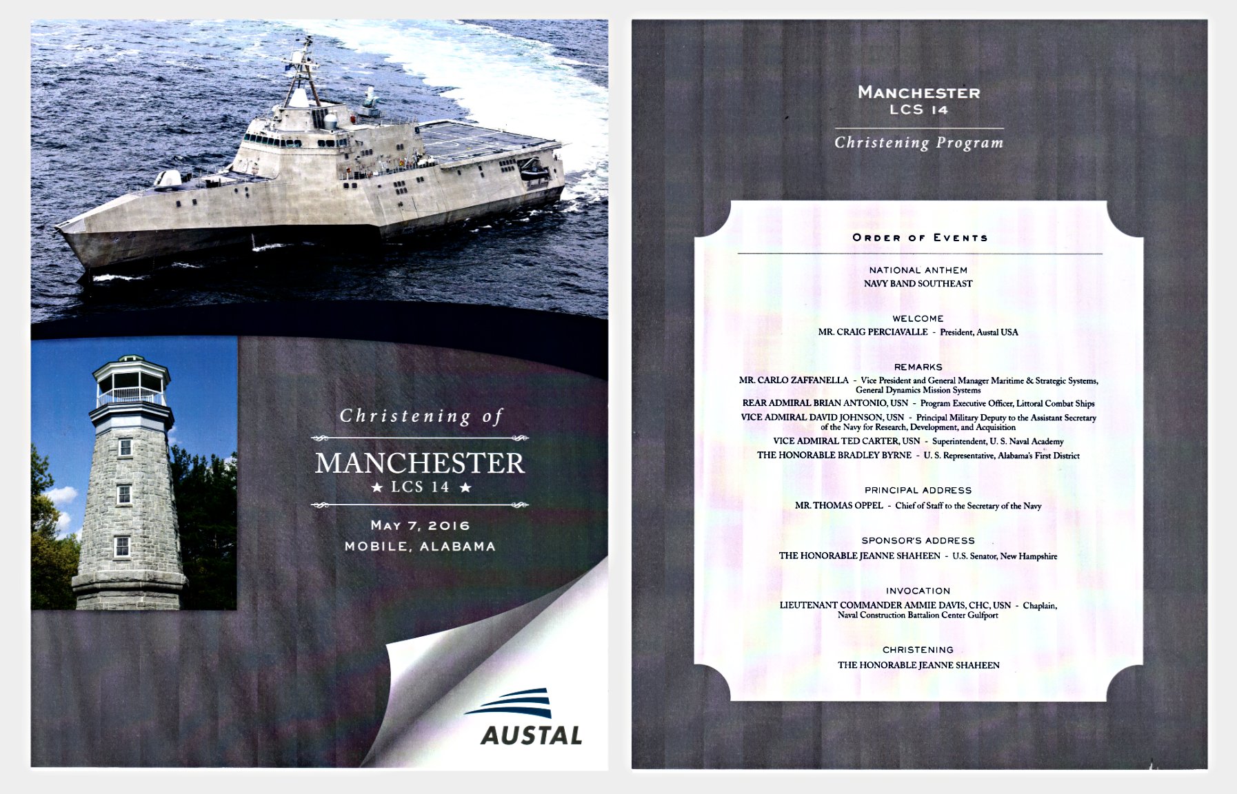 ship is named for the city of Manchester, New Hampshire. (© Photo by Toni Riales, courtesy of Austal USA) | ||