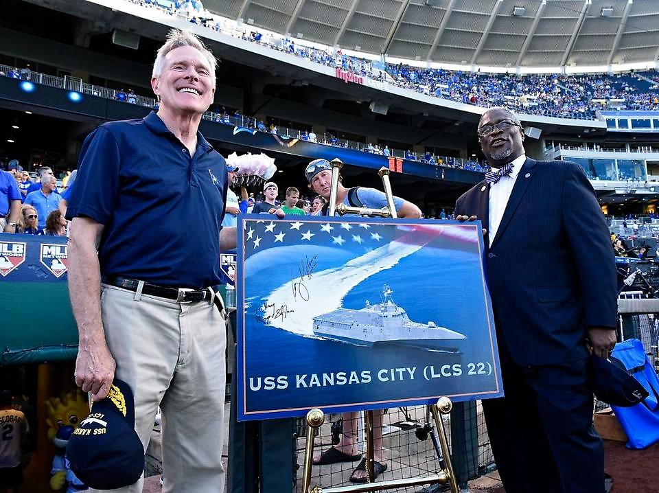 the Royals game against the Pittsburgh Pirates. This will be the second Navy ship to be commissioned USS Kansas City. The first was a replenishment oiler that was commissioned in