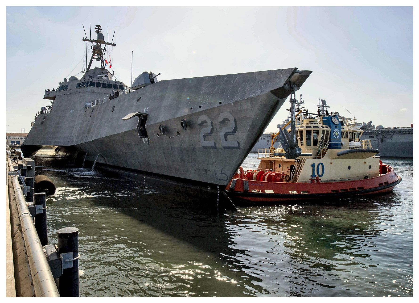 245k | 22 March 2022: Port Hueneme, Cal. - Upper: USS Kansas City (LCS 22) passes Naval Surface Warfare Center, Port Hueneme Division’s Surface Warfare