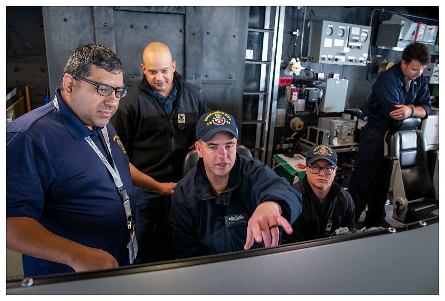 on the bridge of USS Kansas City (LCS 22) during a recent Combat Systems Assessment Team (CSAT) event at Naval Surface Warfare Center, Port Hueneme Division. Homeported in