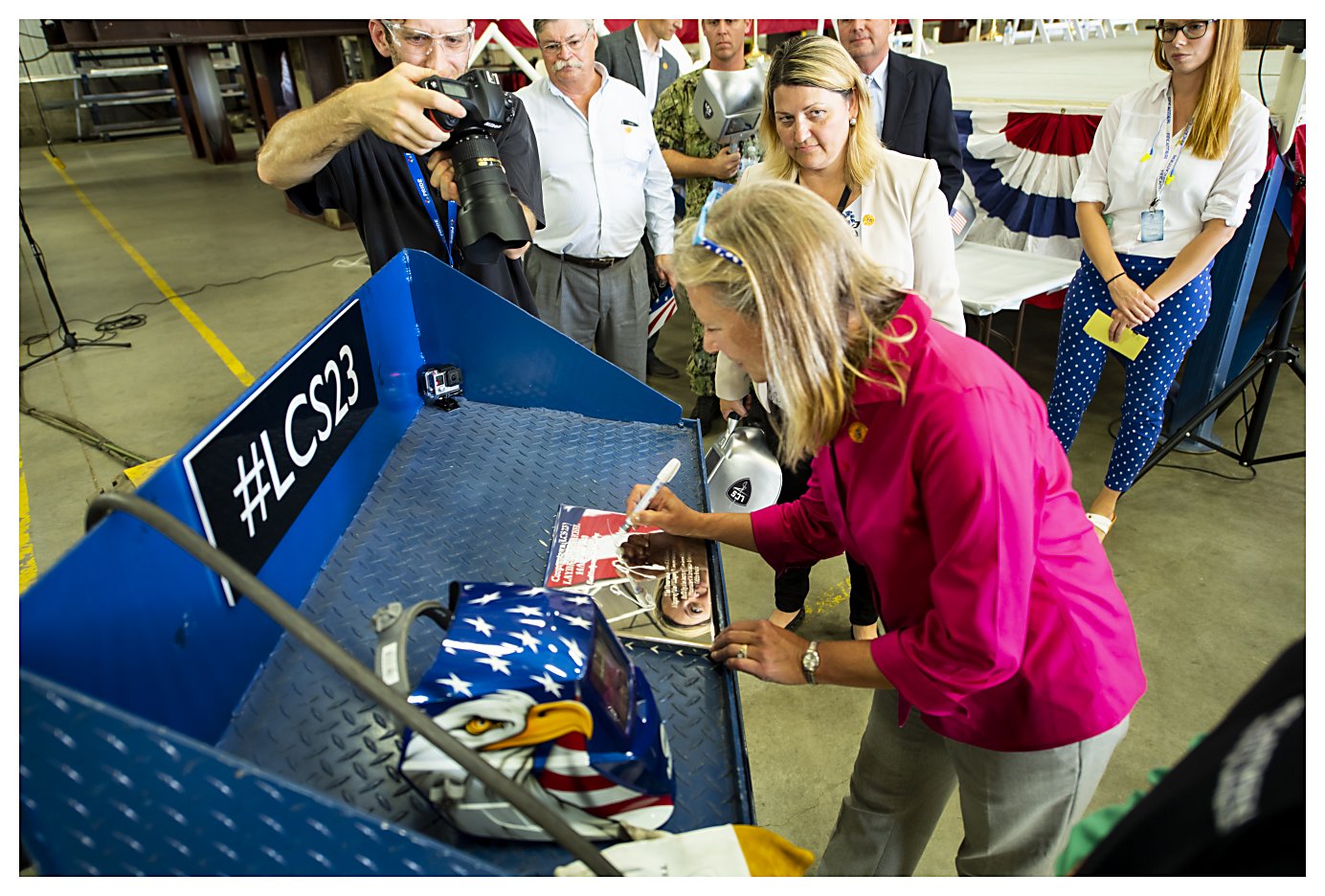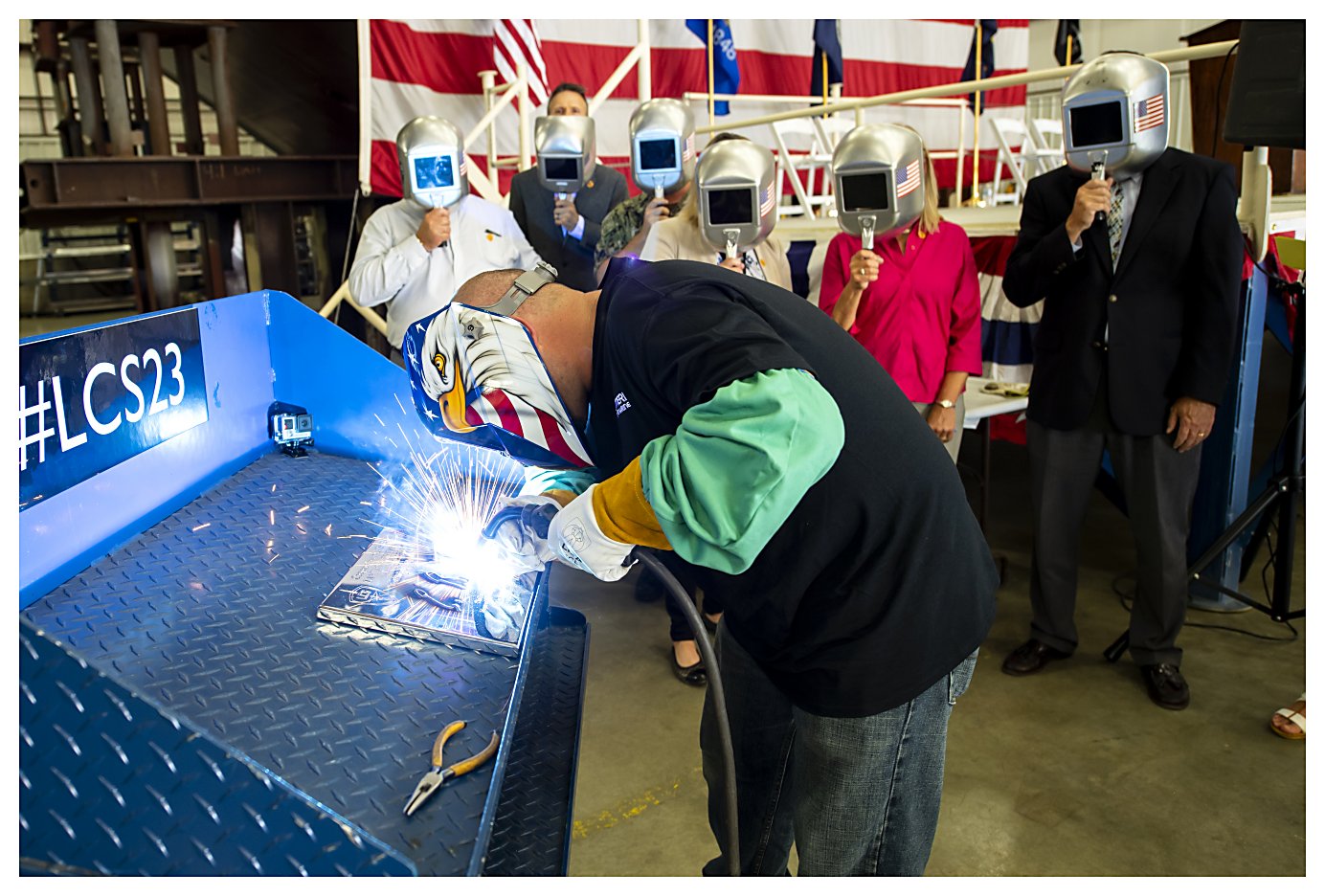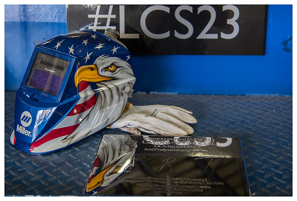 8.) 304k14 August 2018: Marinette, Wis. - The U.S. Navy, together with shipbuilders at the Fincantieri Marinette Marine shipyard, laid the keel for the future littoral combat ship USS Cooperstown (LCS 23) during a keel laying ceremony in Marinette, Wis. The ship's sponsor was unavailable for the ceremony so the keel was authenticated by the Mayor of the Village of Cooperstown, New York, Ellen R. Tillapaugh. Her initials were welded onto a steel plate that was placed into the hull of the ship. (Photos courtesy of LCS Team Freedom, Flickr) 1.) 1523001 2.) 1523002 3.) 1523003 4.) 1523004 5.) 1523005 6.) 1523006 7.) 1523007 8.) 1523008 | ||||