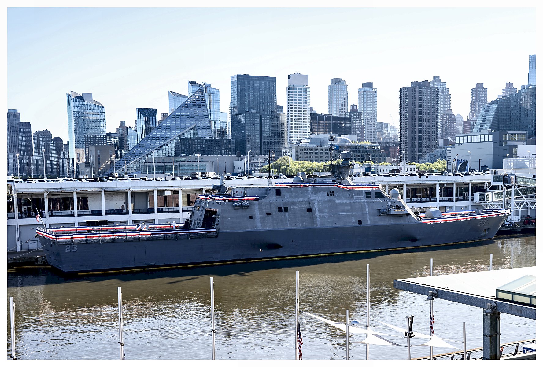 1.) The future USS Cooperstown (LCS 23) sits pierside in New York City prior to the ship’s commissioning ceremony.