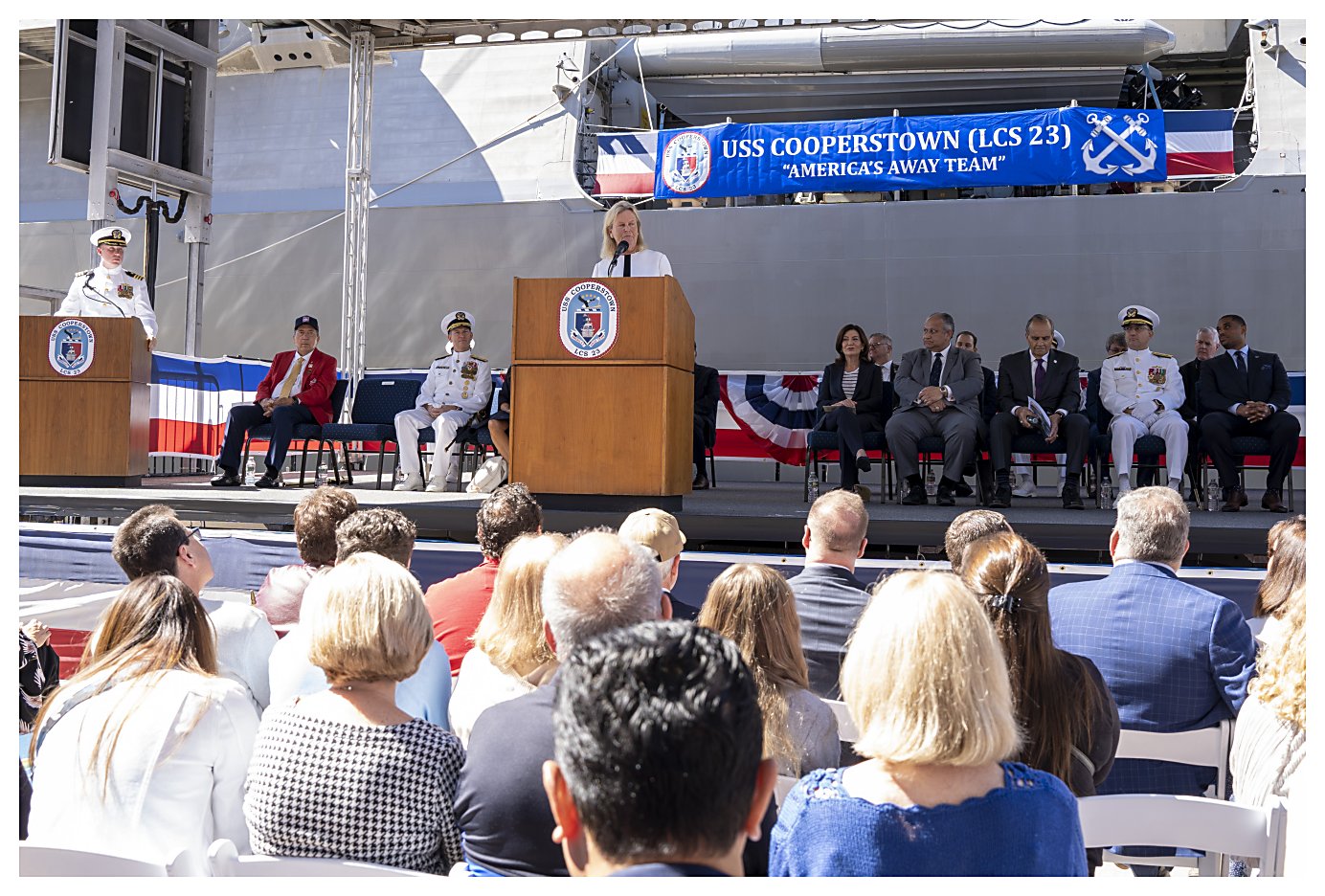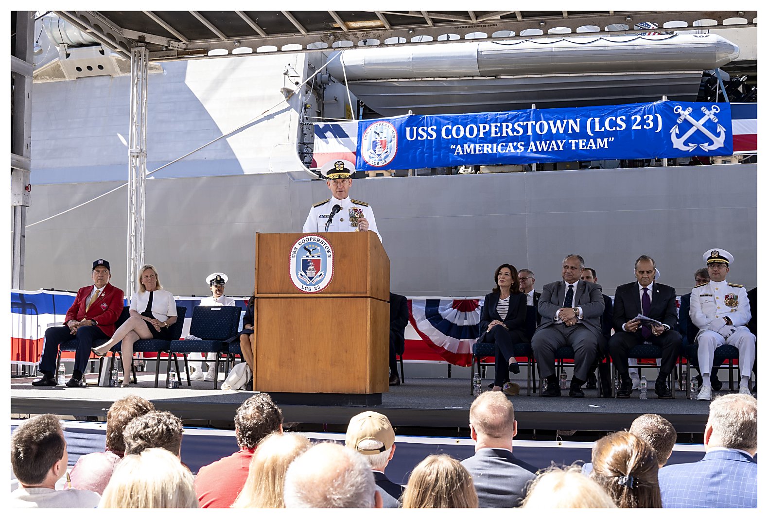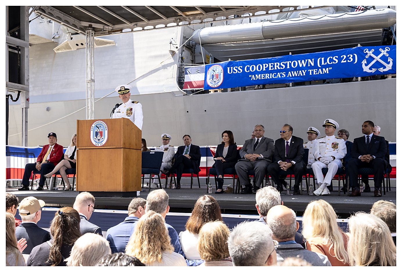 USS Cooperstown (LCS 23) was commissioned at Pier 88 in New York City, across from the USS Intrepid Memorial. She will be the first naval ship named after