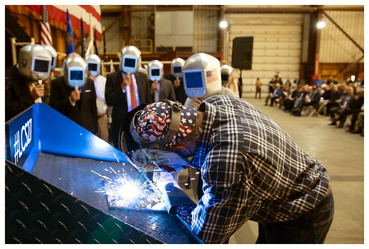 303k09 October 2019: Marinette, Wis. – Lockheed Martin and Fincantieri Marinette Marine marked the beginning of construction on Littoral Combat Ship (LCS) 27, the future USS Nantucket, with a ceremony in Marinette. As part of a shipbuilding tradition dating back centuries, a shipyard worker welded the initials of Polly Spencer, USS Nantucket's ship sponsor and wife of U.S. Secretary of the Navy Richard Spencer, into the ship’s keel plate. This plate will be affixed to the ship and travel with Nantucket throughout its commissioned life. (Photos courtesy of Fincantieri Marinette Marine) 1.) 1527001 2.) 1527002 3.) 1527003 4.) 1527004 5.) 1527005 | ||||