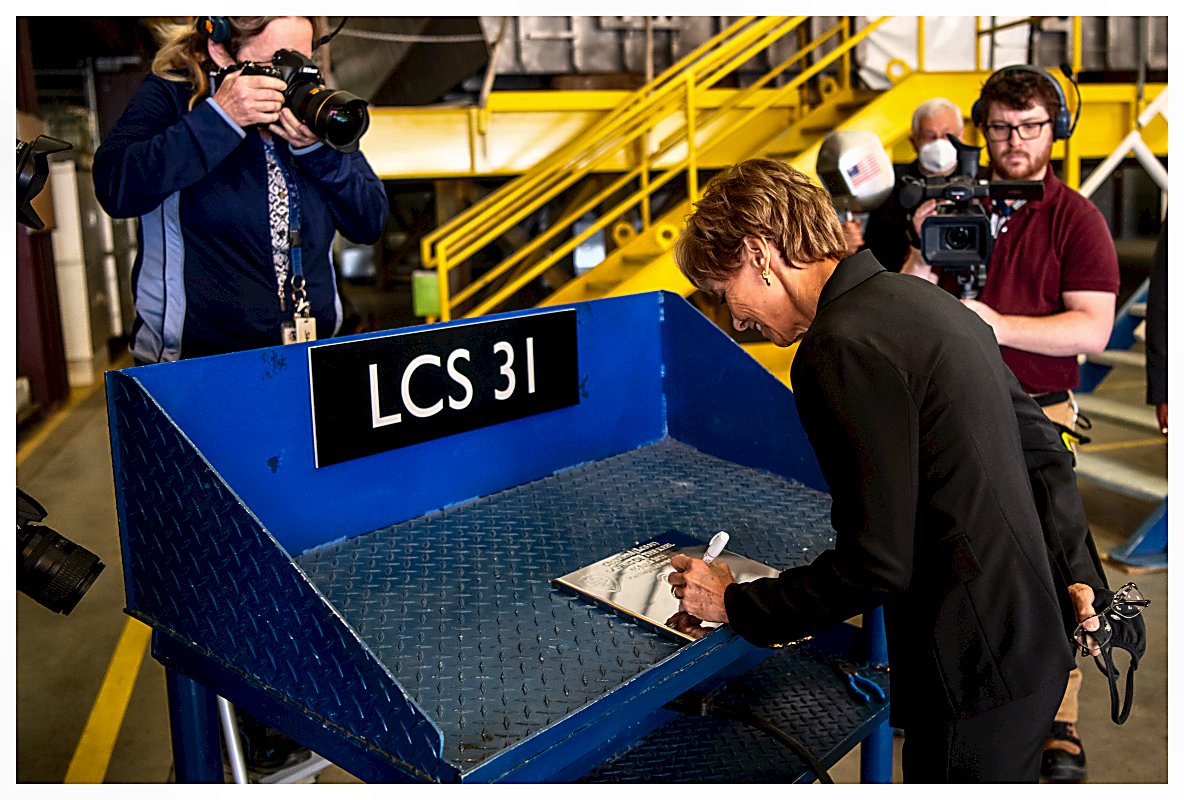 6.) 175k16 June 2021: Marinette, Wis. - A six view series of the keel laying for the future Freedom-variant littoral combat ship USS Cleveland (LCS 31). The ship's sponsor, Mrs. Robyn Modly, is shown authenticating the keel by having her initials welded to a keel plate. This commences the official building of the ship. (Photos from LCS Team Freedom on flickr) 1.) 1531001 2.) 1531002 3.) 1531003 4.) 1531004 4.) 1531006 |