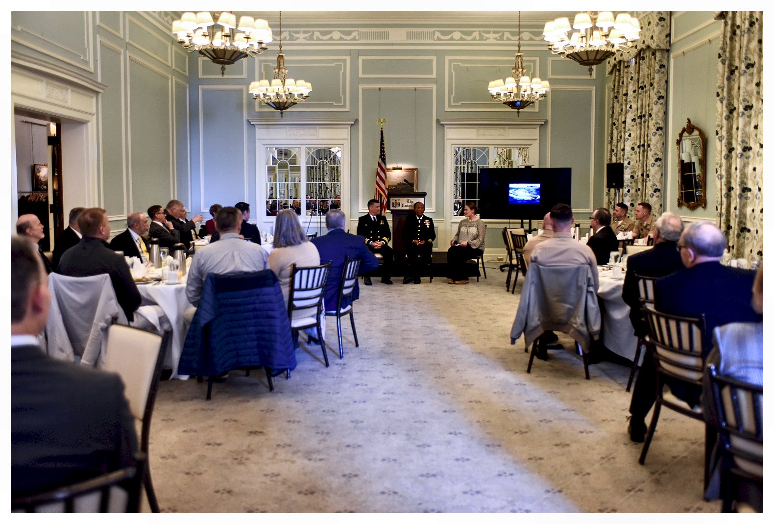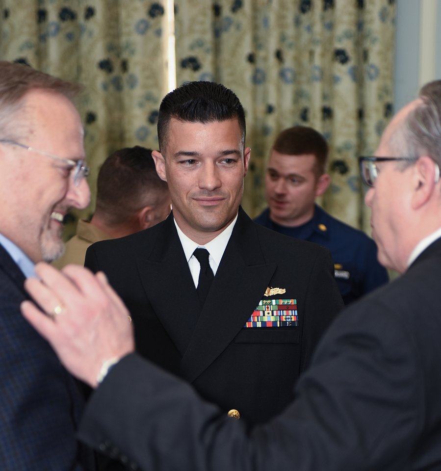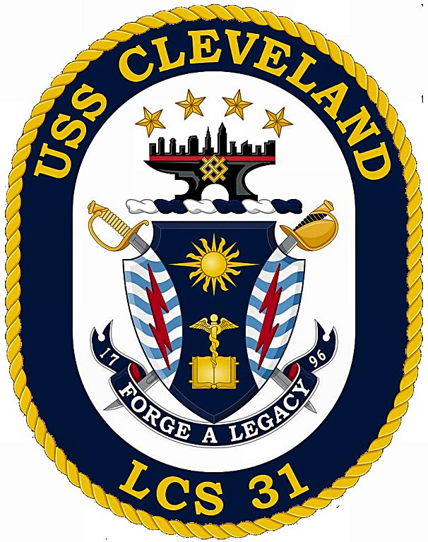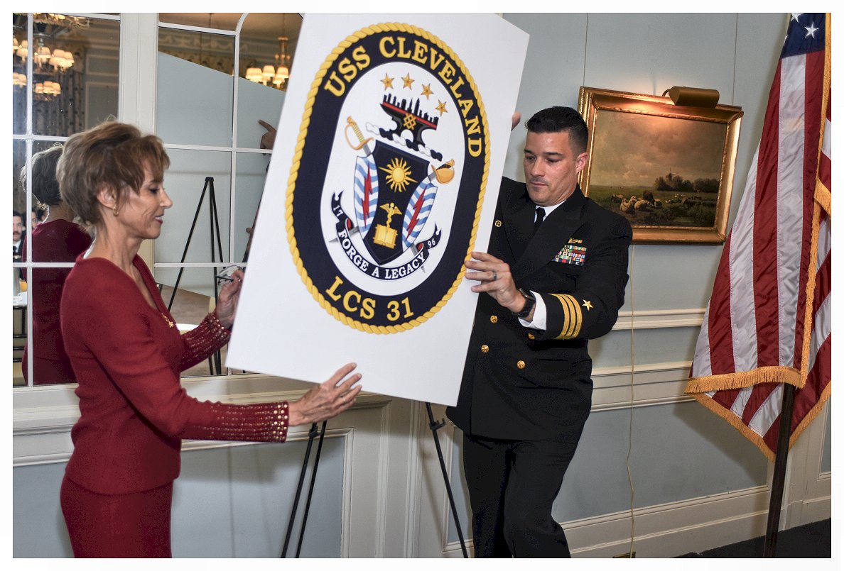(U.S. Navy photos by MC1 Theron Godbald courtesy of the Defense Visual Information Distribution Service)The unveiling event was organized by the USS Cleveland Legacy Foundation, a non-profit based in Cleveland, that formed from the commissioning committee. “We plan to continue to support the crew and ship through her service life and bring her back to Cleveland as a museum if the Navy has no greater and higher purpose for her,” Courtney Smrdel, Director of Operations for the foundation said Friday. The USS Cleveland is the fourth Naval vessel named after Cleveland and is slated to be the last of 16 Freedom-class LCS ships. Initiated in February 2002, the LCS program represents a reduction in time to acquire, design, and build ships in comparison to any previous ship class. FY 2019 was the final year programmed for LCS seaframes according to the Navy’s website. It was an absolute honor to represent the crew of PCU Cleveland at the official unveiling of the ships crest,” Cmdr. Bruce Hallett, commanding officer of the USS Cleveland, said after the unveiling ceremony. “I look forward to forging a legacy with the commissioning committee and the great city of Cleveland as we prepare to commission the USS Cleveland.” 1.) Commander Bruce Hallett, commanding officer and Command Master Chief Carla Bellamy of the future USS Cleveland (LCS 31) speak to the Cleveland Legacy Foundation. ...................................240405-N-FP878-9416 2.) Commander Bruce Hallett, commanding officer and Command Master Chief Carla Bellamy speak to the Cleveland Legacy Foundation before revealing the ships crest. .....................................................240405-N-FP878-3489 3.) Commander Bruce Hallett, commanding officer of the future USS Cleveland (LCS-31) and sponsor Robin Modly reveal the ships crest. .................................................................................................................240405-N-FP878-9416 4.) Commander Bruce Hallett, commanding officer, Command Master Chief Carla Bellamy, sponsor Robin Modly, and active duty service members after revealing the ships crest. .....................................240405-N-FP878-8439 5.) Commander Bruce Hallett, prospective CO USS Cleveland (LCS 31) speaks to the Cleveland Legacy Foundation after revealing the ships crest. ...............................................................................................240405-N-FP878-8853 1.) 1531007 2.) 1531008 3.) 1531009 4.) 1531010 4.) 1531011 |