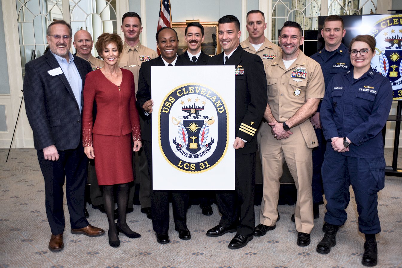 Marked a milestone for the last freedom-class littoral combat ship (LCS), the future USS Cleveland (LCS 31), when they unveiled the ships crest during a ceremony at the Union Club in