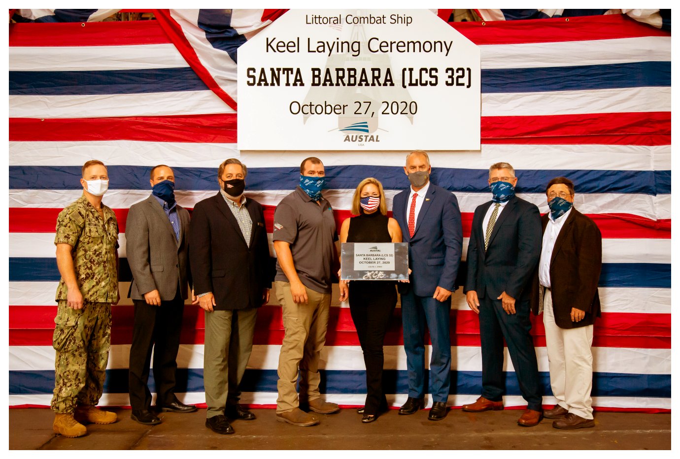 4.) 170k27 October 2020: Mobile, Ala. - Ship’s sponsor Lola Zinke, a Santa Barbara native, authenticated the keel for the 16th Independence variant of the littoral combat ship class during the ceremony. While keel laying traditionally represents the formal start of a ship's construction, advanced modular shipbuilding allows fabrication of the ship to begin months in advance. Today, keel laying continues to symbolically recognize the joining of the ship's components and the ceremonial beginning of the ship. (Photos courtesy of Austal USA) 1.) 1532004 2.) 1532005 3.) 1532006 4.) 1532007 | |||||||||||