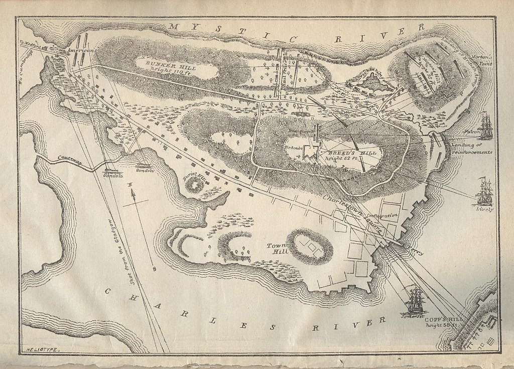117K | NS021737. "The Battle at Bunker's [sic] Hill," drawing by Henry A. Thomas; published by C. Frank King, Boston, c.1875. Library of Congress reproduction # LC-USZ62-4430. NS021737a. An illustrated map of the battle ground on Charlestown peninsula, encompassing Bunker and Breed's Hills, from "History of the Battle of Bunker's [Breed's Hill] on June 17, 1775," George E. Ellis; Boston, 1875. |