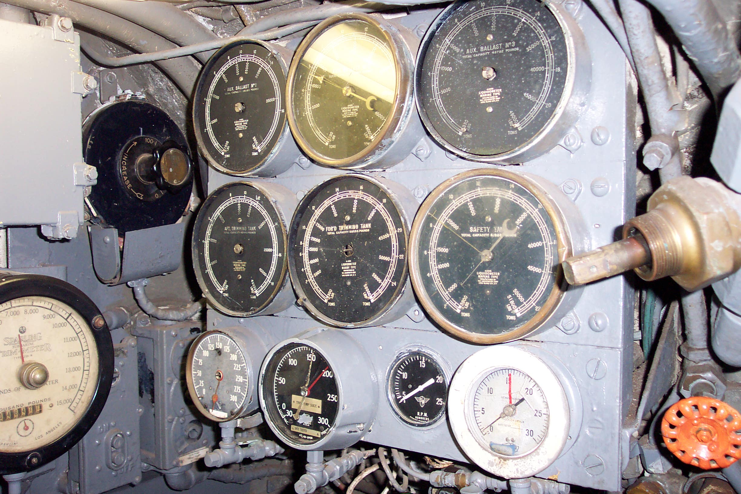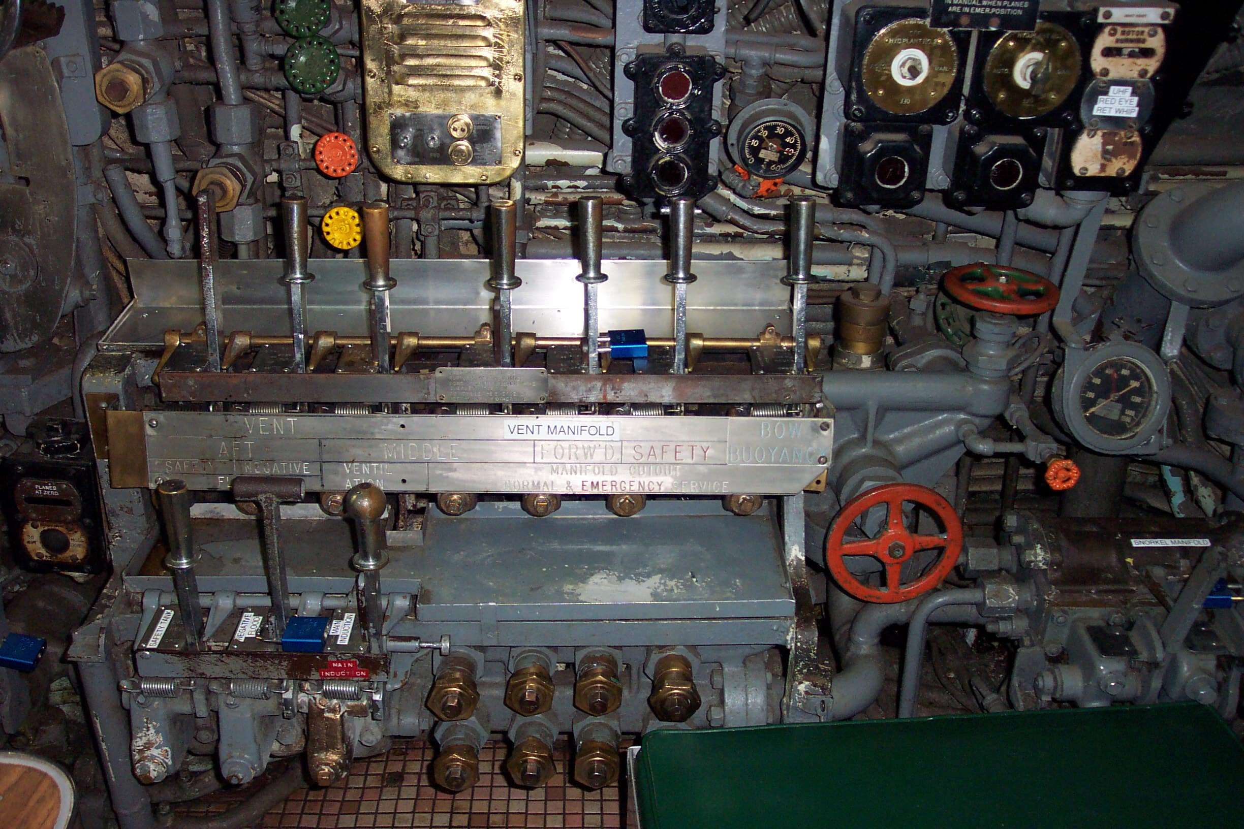 90k | Control Room. Dive station. Wheel to left controls rear dive plane Wheel to Right controls forward plane. High Resolution Image 423K |