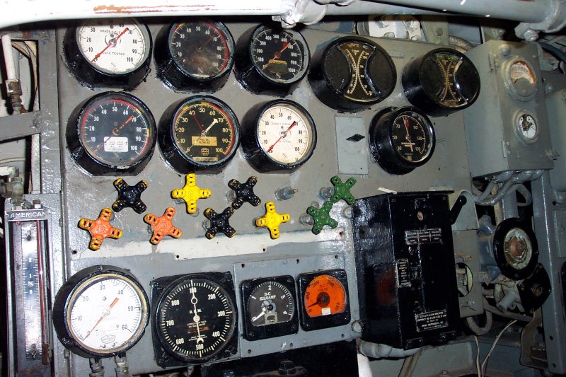 130k | Forward Engine Room. Control Station Guages. High Resolution Image 569k |