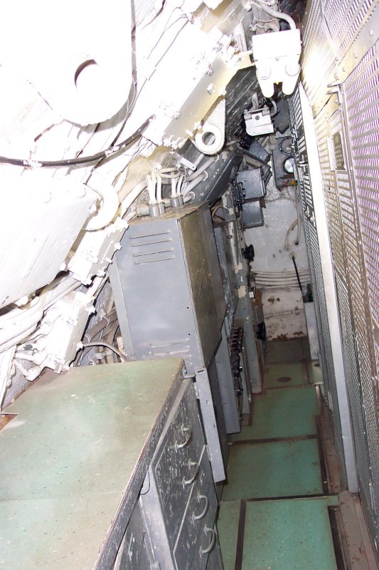 137k | Aft Torpedo Room. Note TV and extension cord cables. High Resolution Image 584K |