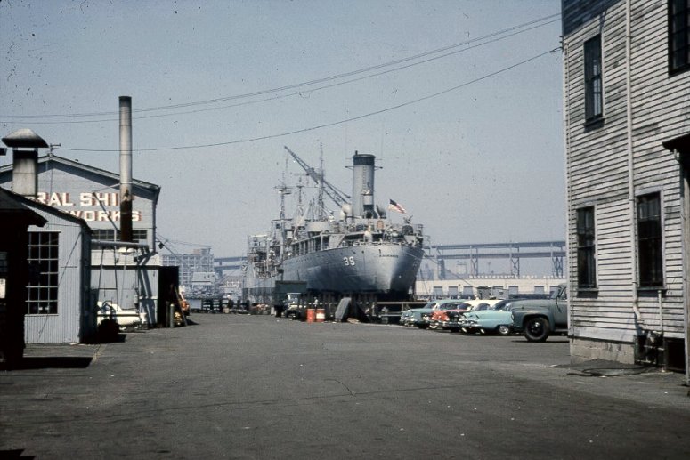 110k | USS Kankakee (AO-39) in dry dock at East Boston, June 1962 | © Richard Leonhardt | |
