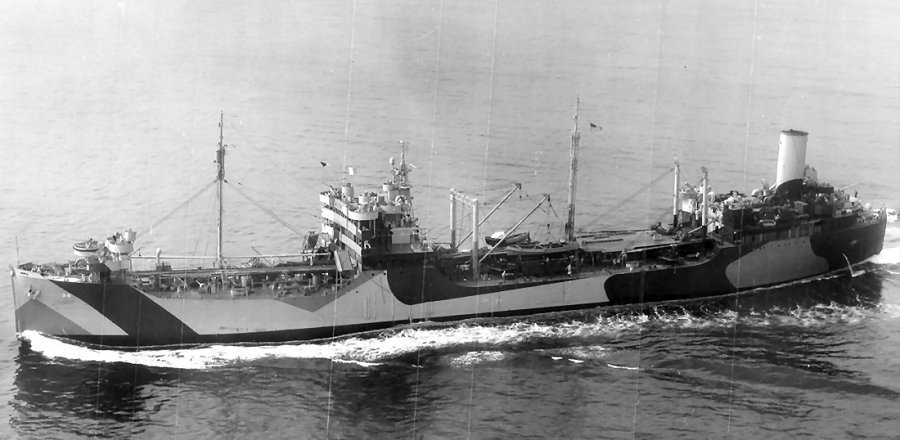 73k | USS Kankakee (AO-39) underway off San Pedro, CA., 21 August 1944, wearing camouflage 32/6AO.