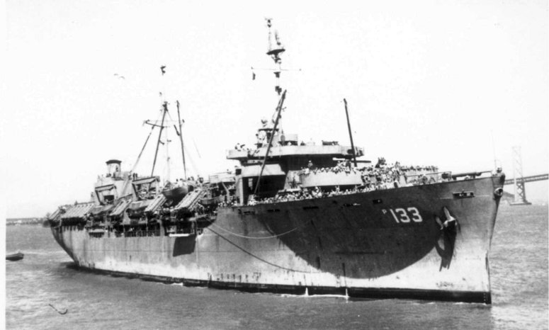 51k | General Oswald H. Ernst (AP-133) arriving in San Francisco Bay, date unknown. | Submitted Dr. Paul M. Webber MD, courtesy Yves Hubert | |
