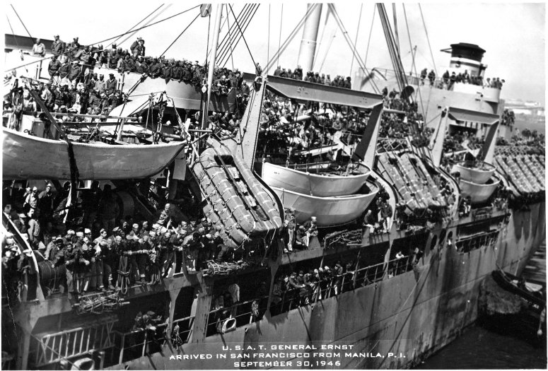 100k | USAT General Oswald H. Ernst arriving at San Francisco from Manila, P.I, 30 September 1946 returning troops from the Far East