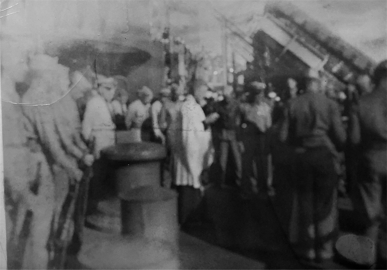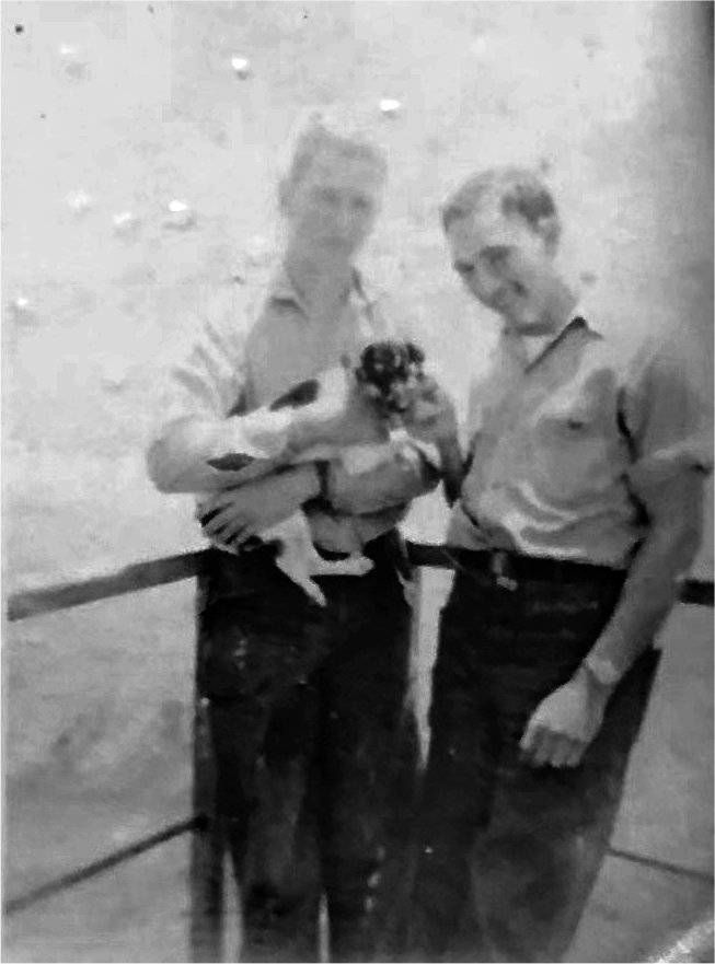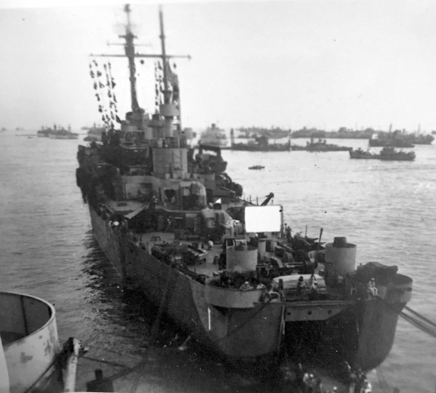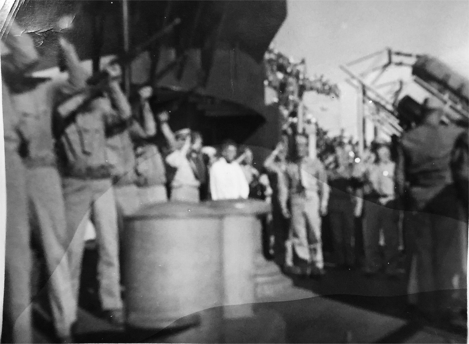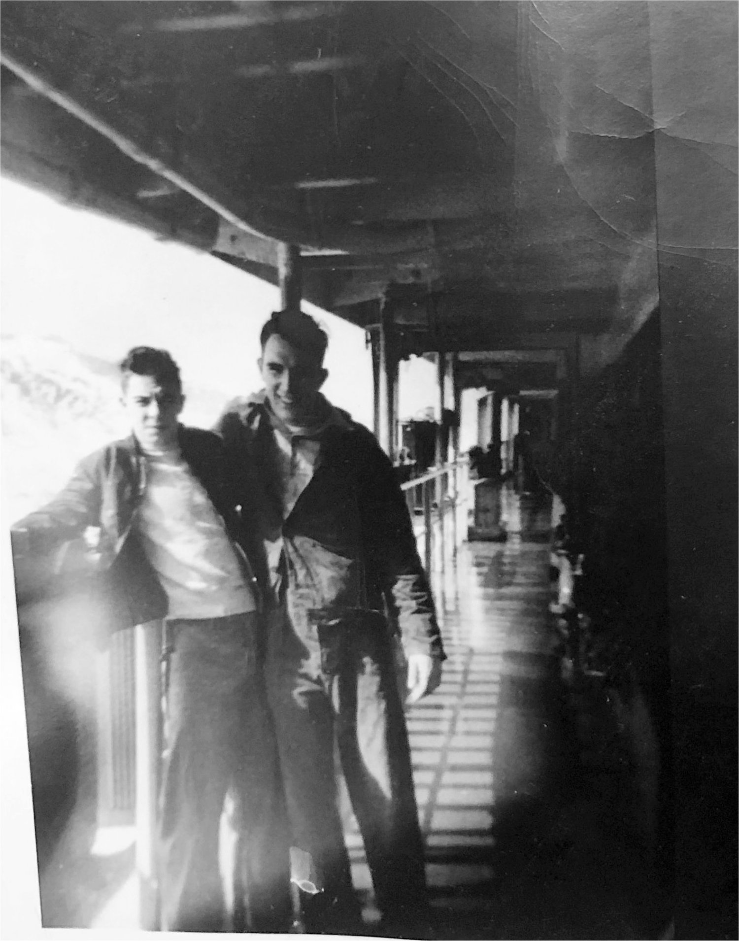 |  Upper Left - Bruce Chaney(without shirt) & John Goen, Upper Right - Bruce Chaney & Edwin Cates (with S-23 on Jacket) Lower Left - General O.H Ernst docked at Yokohama, Japan. Lower Right - USO show aboard ship