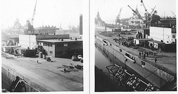 Two photos of the Navy Yard at San Pedro, CA. in 1945