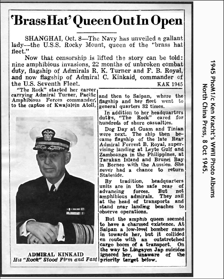 2584k | USS Rocky Mount (AGC-3) drydocked at San Francisco, CA., in February 1946. | Carl Kracht for his father PHom1/c Ken Kracht | |