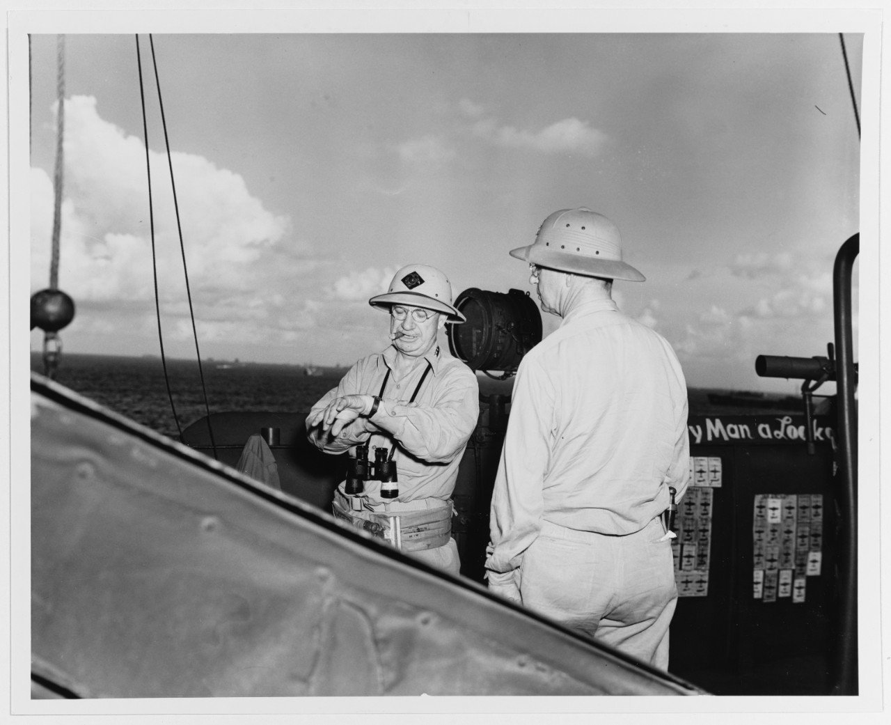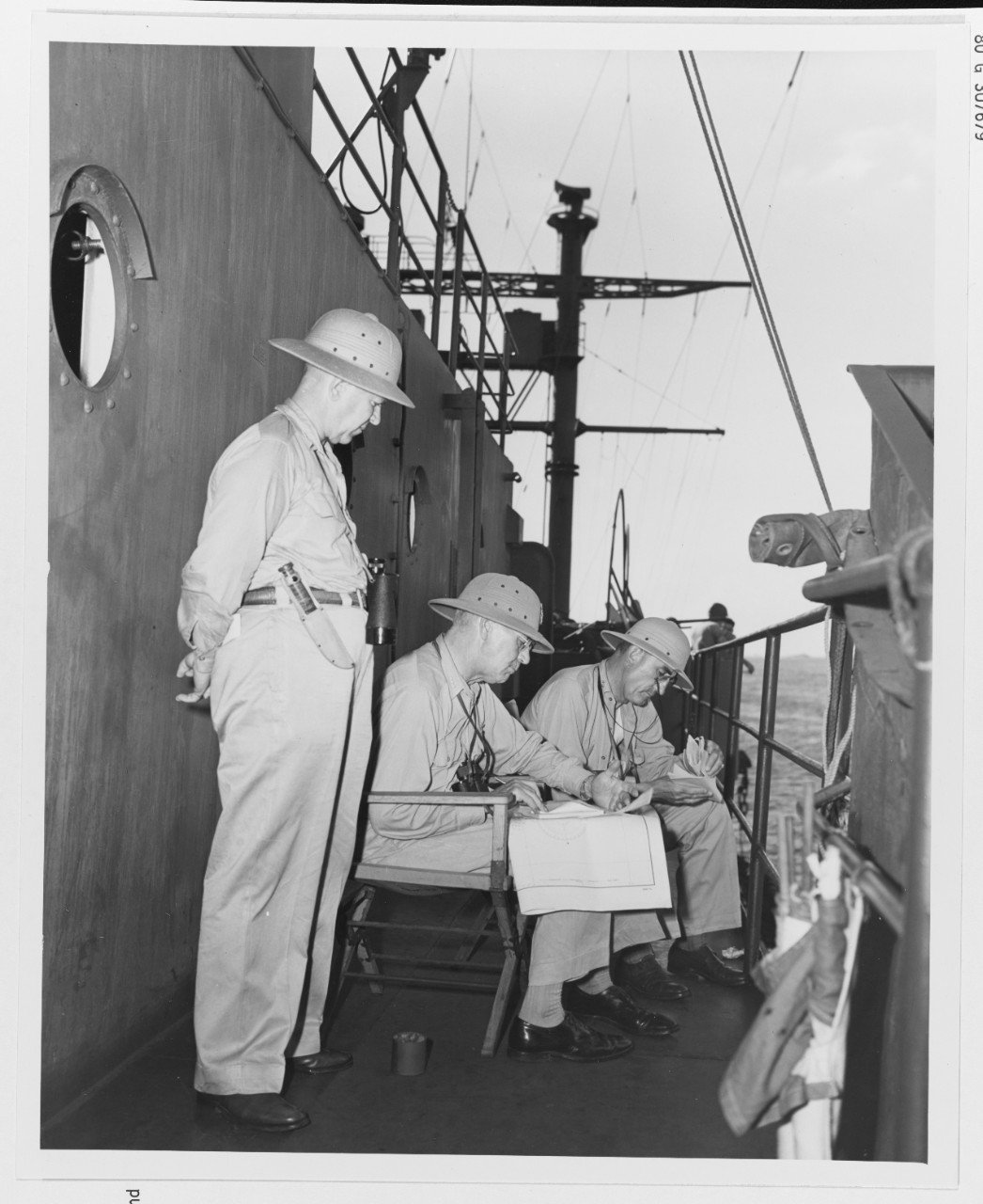 175k | VADM. Richard K. Turner, USN, Commander Amphibious Forces Pacific Fleet aboard his flagship USS Rocky Mount (AGC-3) off Saipan, 17 June 1944.