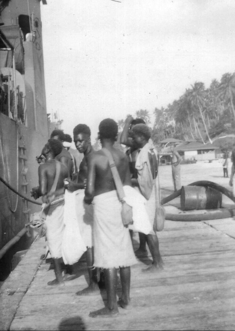 98k | USS LSM-9 early-July 1945. Solomon Islanders greet the ship at Tulagi. | Raymond A. Biswanger, Jr., Ph.D., LT. USN Ret. USS LSM-9 | ||