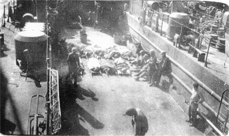 49k | USS LSM-46 transporting wounded Marines from the beach to a hospital ship waiting off shore in the transport area at Iwo Jima, date unknown. | Richard Miller BMCS USNR Ret. for his father Lawrence A. Miller QM2/c USS LSM-46 | |