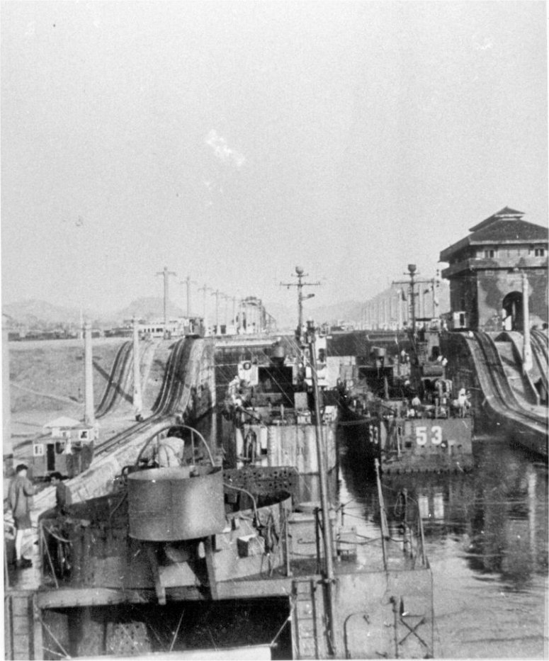 127k | USS LSM-53 together with an unidentified LSM in the locks in the Panama Canal, date unknown. | Bob Magnuson to the USS LSM / LSMR Association | |