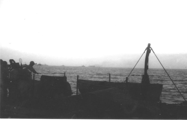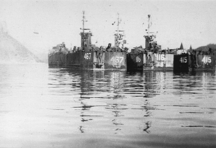 25k | USS LSM-116 during invasion of Okinawa, circa 1 to 3 April 1945. | Photo by H. E. Freeman PhM/1c, LSM-116 now in the collection of Robert C. Lozmack, BM/2c, LSM-116 and LSM-467 |